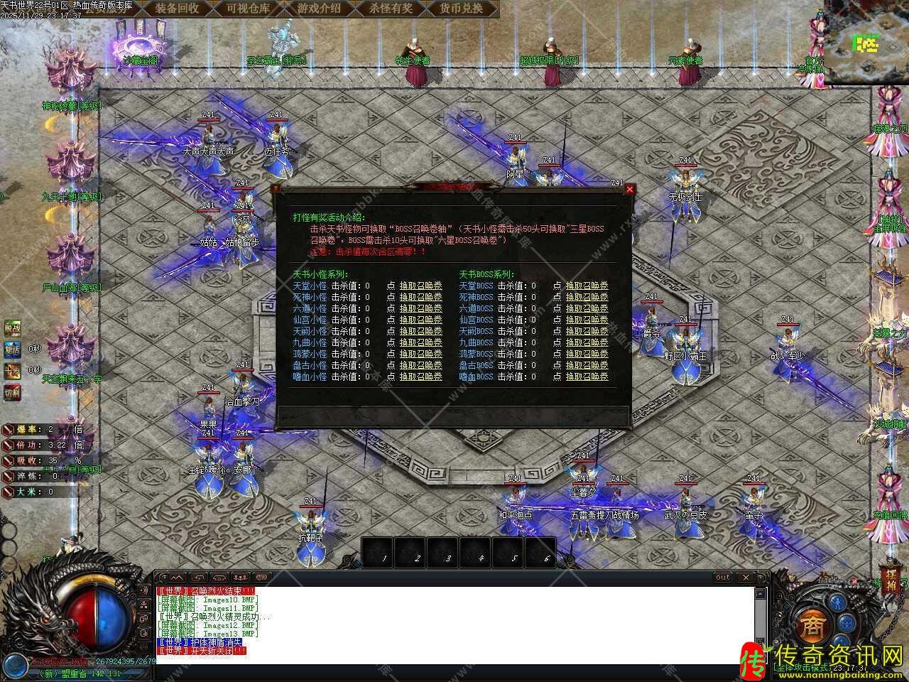 五.新增转生之地中级地图,这里面的初级BOSS(30分钟刷新)、中级BOSS(60分钟刷新),初级装备好爆,中级装备好爆,高级装备较难,需要转生等级14转或者开启狂暴之力才可以进入此地图。