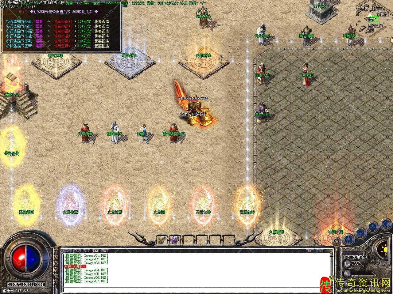 版本介绍:此热血传奇私服服务端泡点可泡到70级,70以后吃经验卷和打怪回收装备可升到75级!