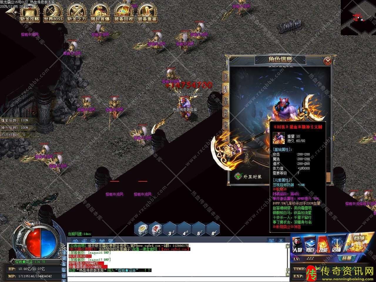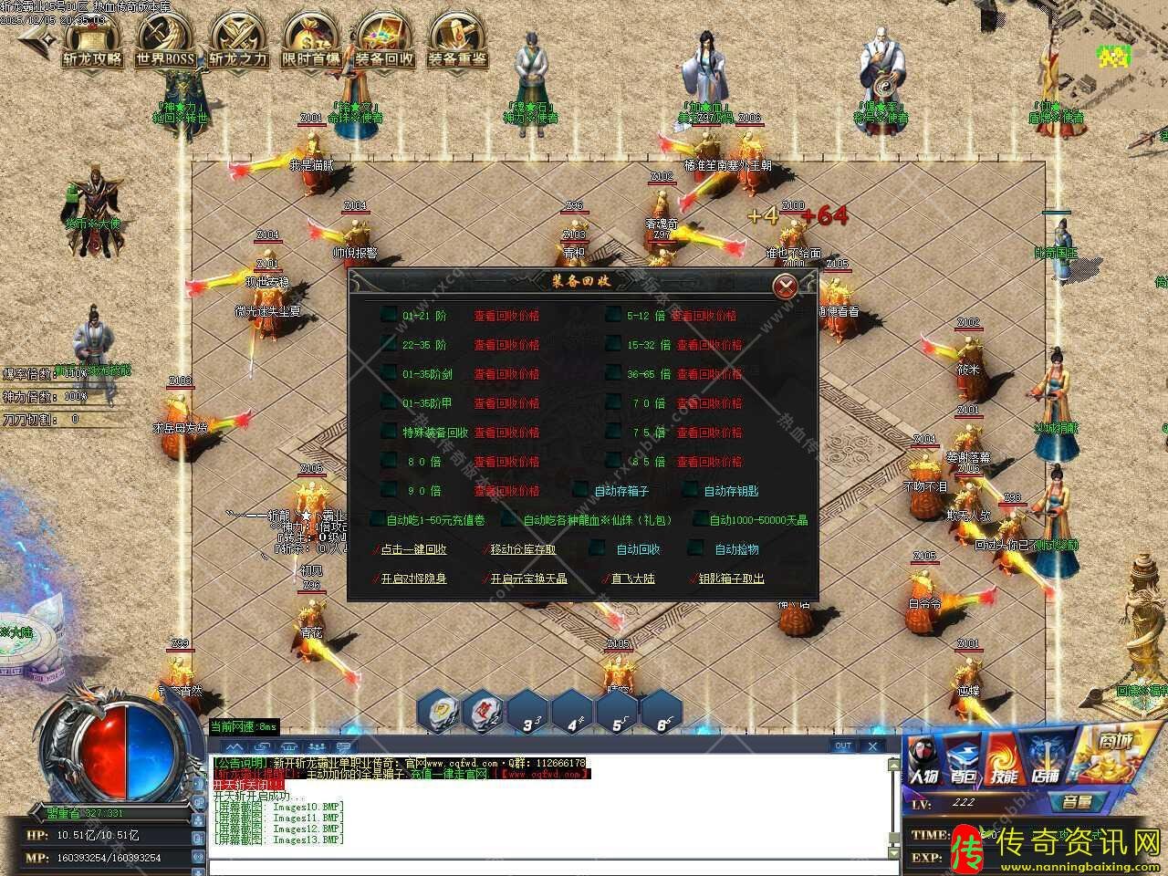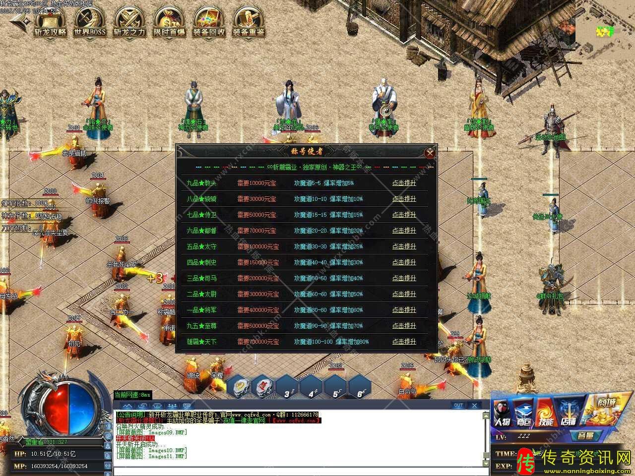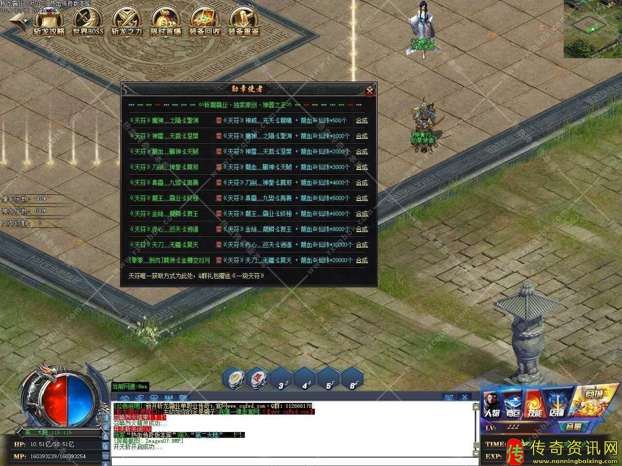 七.新增斩龙霸业BUFF功能,此BUFF带神力和爆率倍增等属性,获得【斩龙霸业BUFF】1%几率直接打掉3*3范围所有玩家和怪物,爆率增加999%,打怪爆满屏,**方式简单不繁琐,只需要99999金币和达到240级即可。
