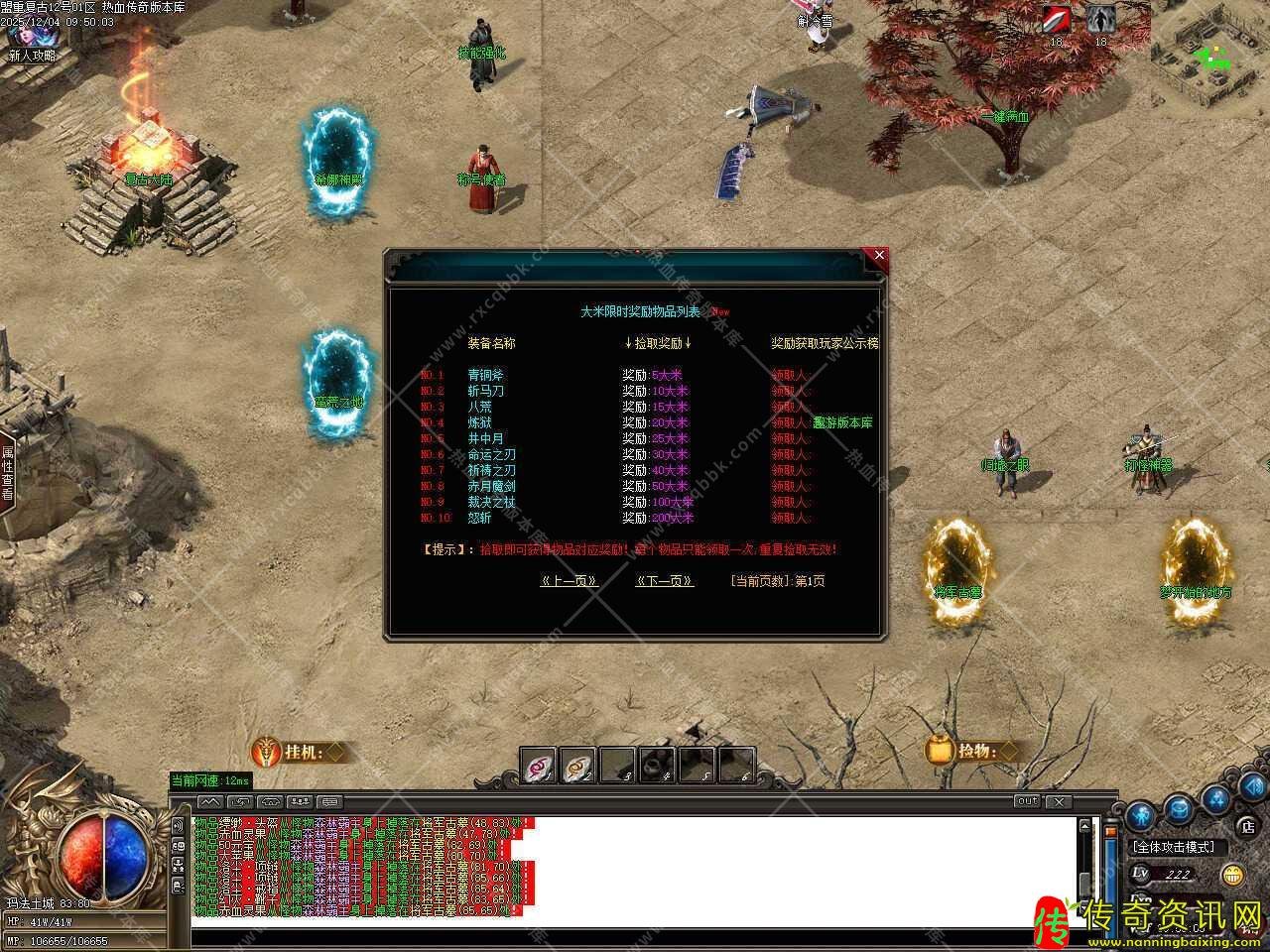 四.添加江湖宗师NPC,在那里可以用材料贴子兑换奖励,1个贴子可兑换两千万经验,能升到100级;1个贴子可兑换五千元宝,散人玩家的专属;50个贴子可兑换护体神盾,超级防御。温馨提示:所有地图都有掉落贴子材料,其中福利怪必爆一个。