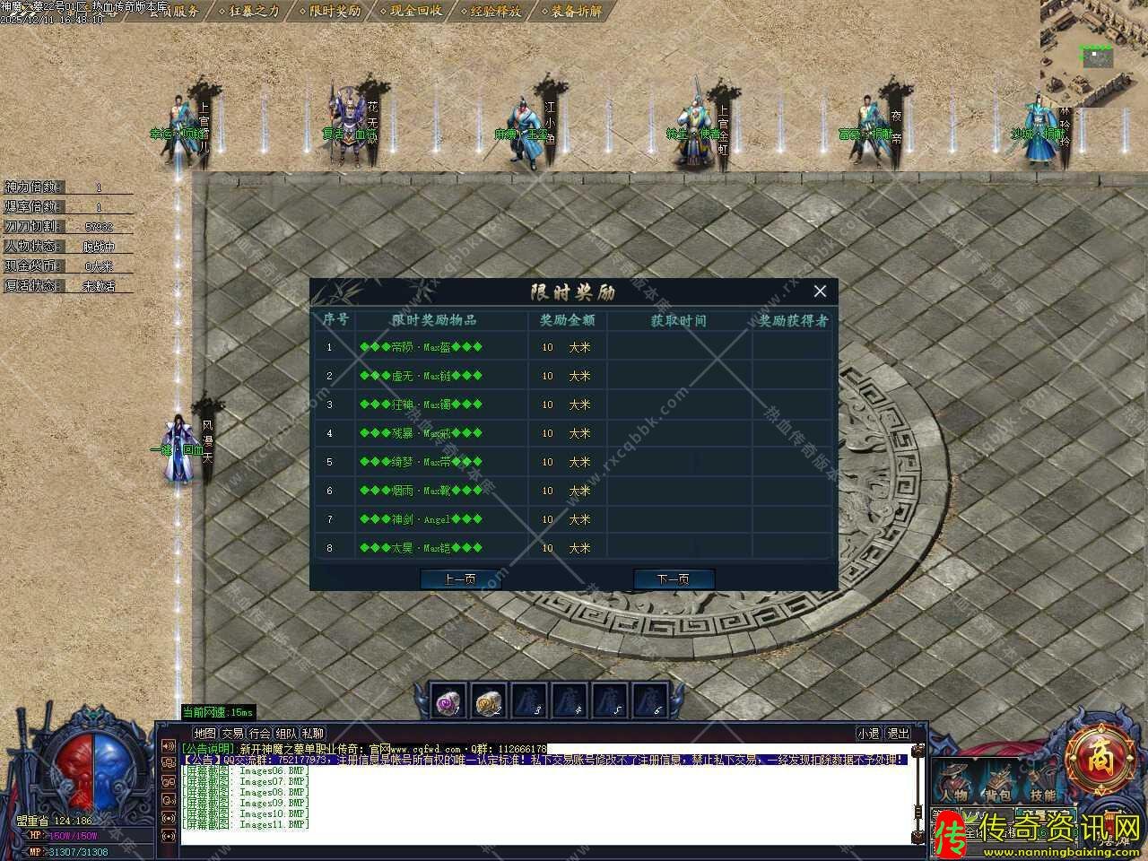 六.此传奇版本第3天上午10点-11点准时合区拿沙,沙城奖励多多,请晚上18点前建立好行会,本服主要靠人多拿沙激情,大小号都能打的动人,不存在大号无敌的情况,如果想拿胜利方,请尽力收玩家。