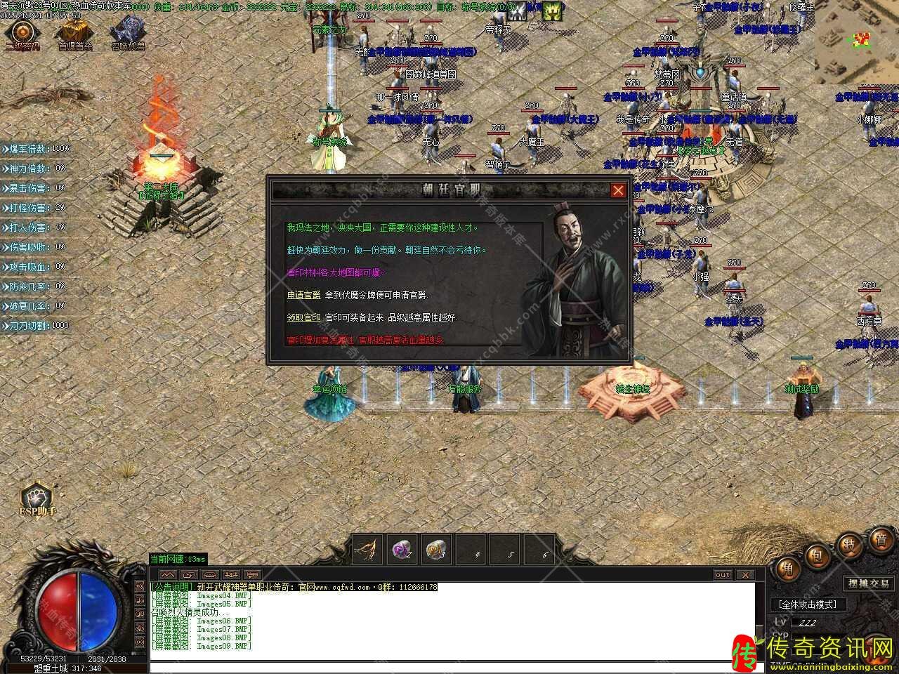 五.为方便新手升级,添加了经验合成功能,主要合成特殊的经验卷轴,可以让你打怪经验更高,两倍经验卷需要经验碎片10个,元宝2000颗,保持60分钟双倍经验;三倍经验卷经验碎片30个,元宝5000颗,保持60分钟三倍经验;五倍经验卷需要经验碎片100个,灵符49颗,保持60分钟五倍经验。