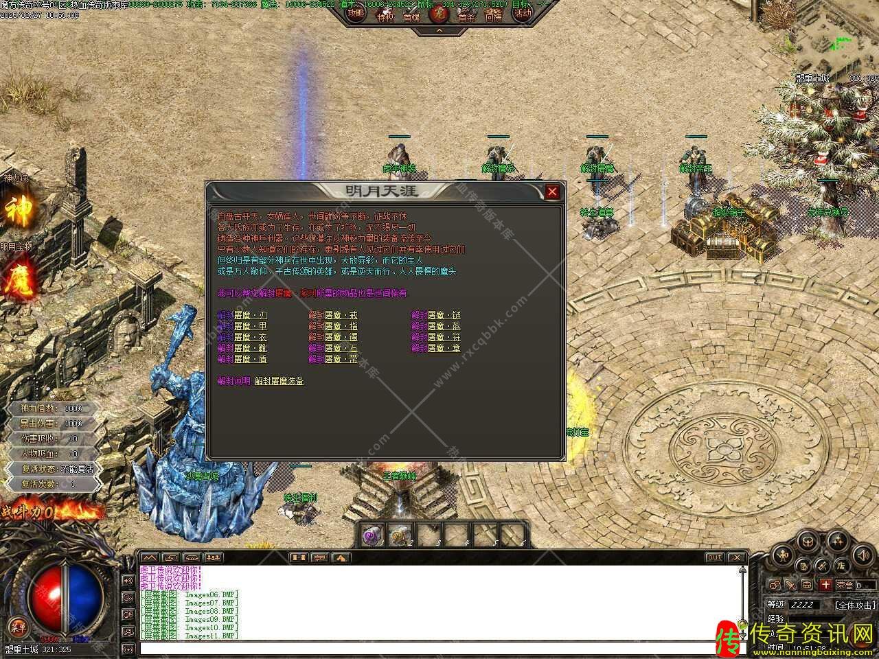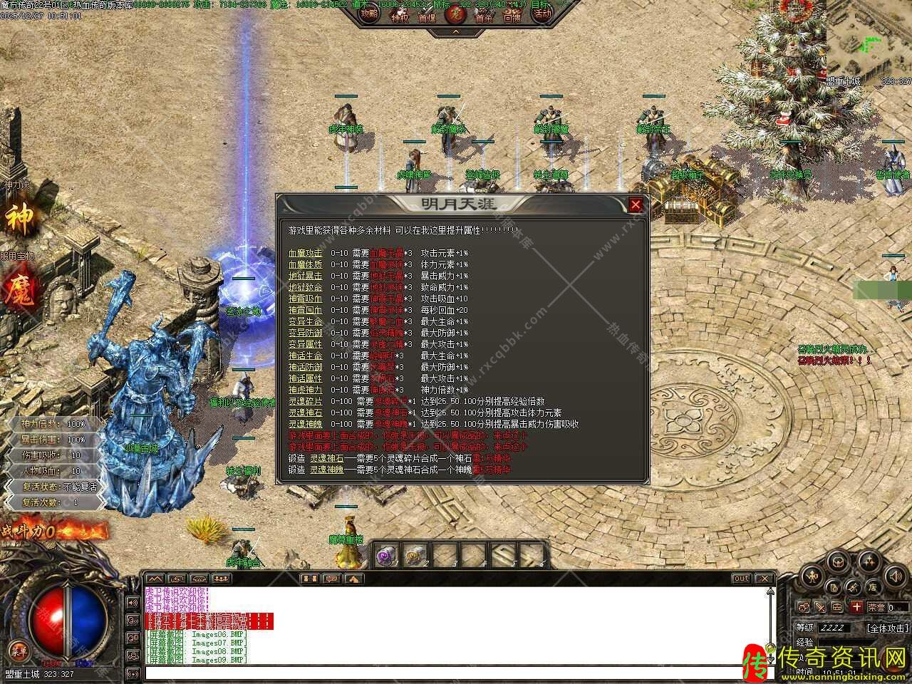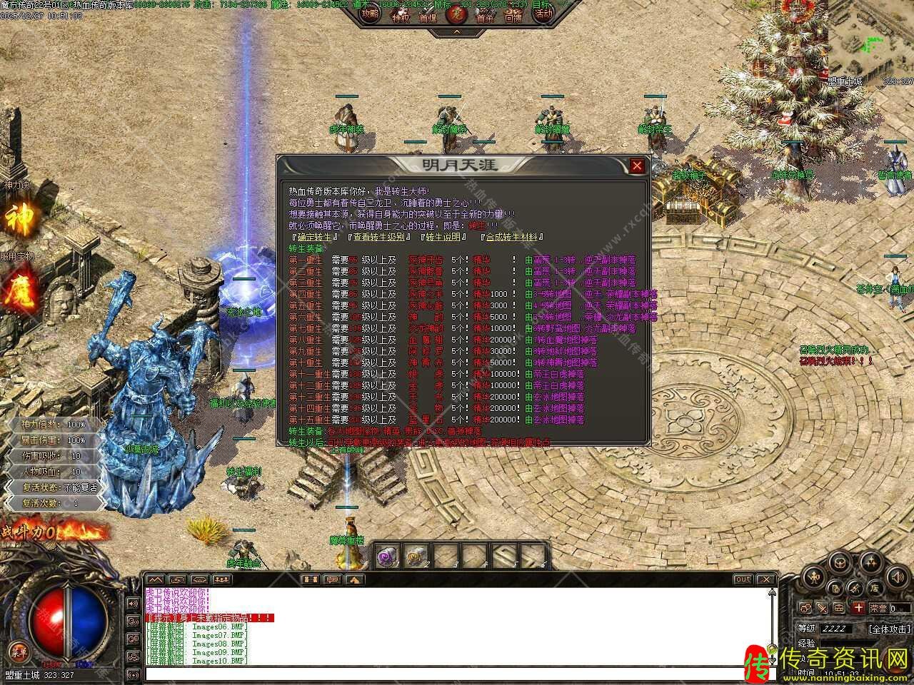 三.很多材料合成的,不用去管(轩辕2件套除外),合成解封的都能爆成品 (武器衣服建议解,成品爆率低),主打BOSS传奇,基本地图老黑都作了镜像,新手上线记得以转生为主,属性点随你加,建议敏捷、血量和攻击。