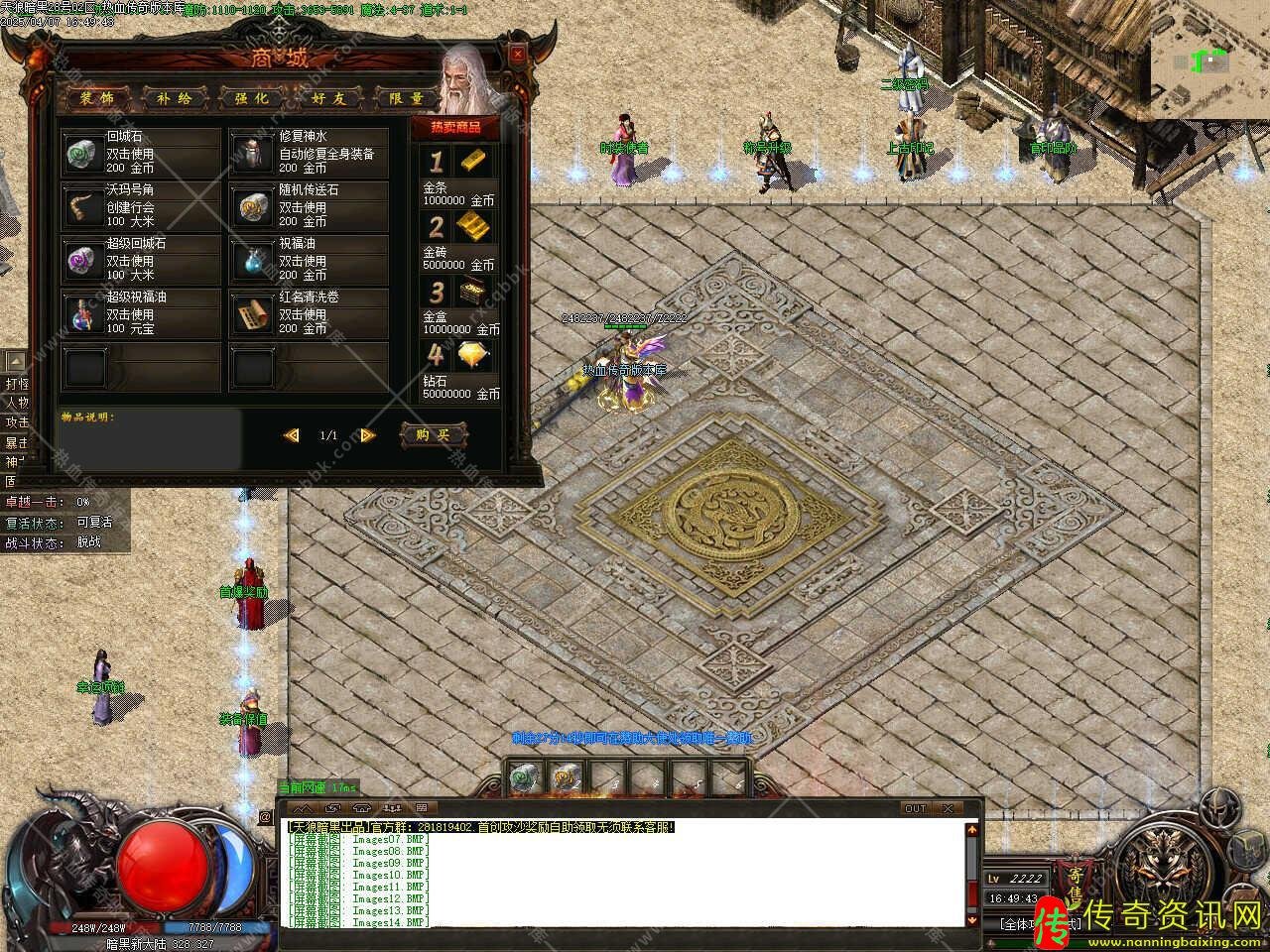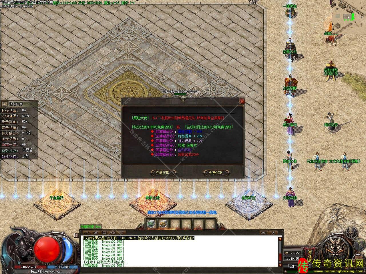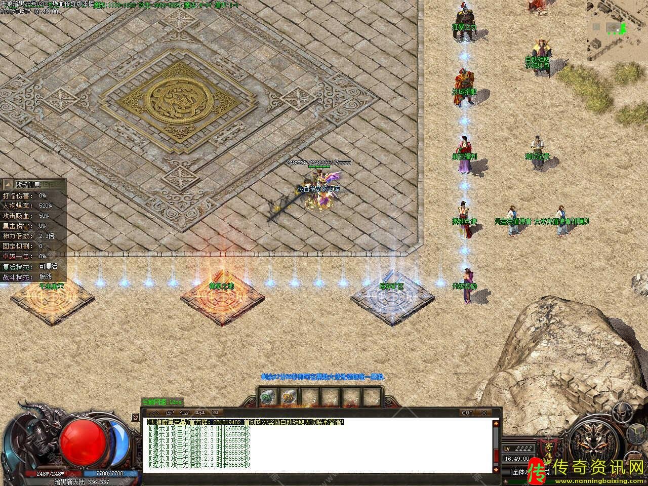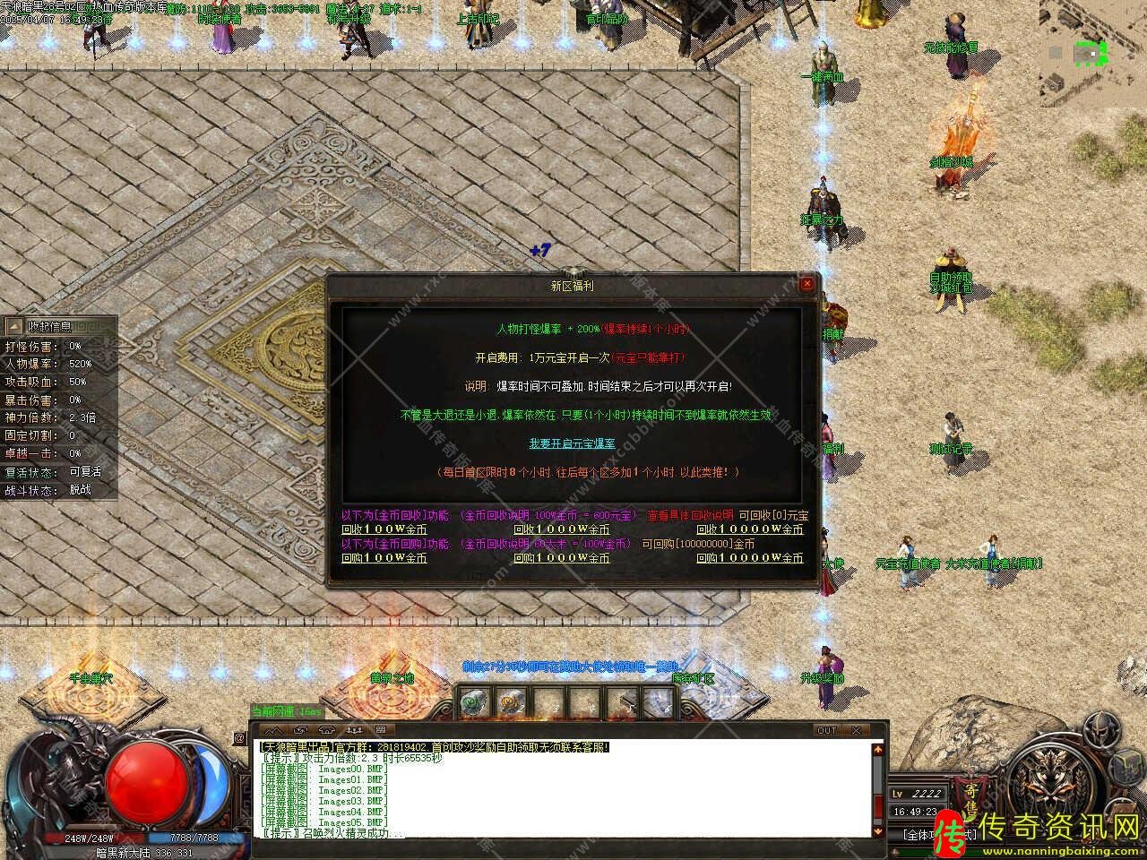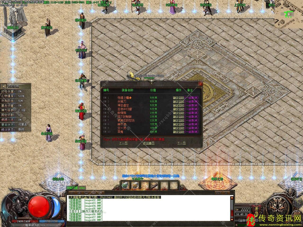 版本介绍:本服玩法简单易懂无坑,所有装备全部靠打,散人好发展,简单耐玩,高爆率惊喜连连,打怪狂出光柱,新增自动捡物、自动回收等功能。
