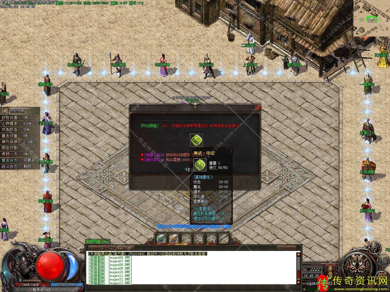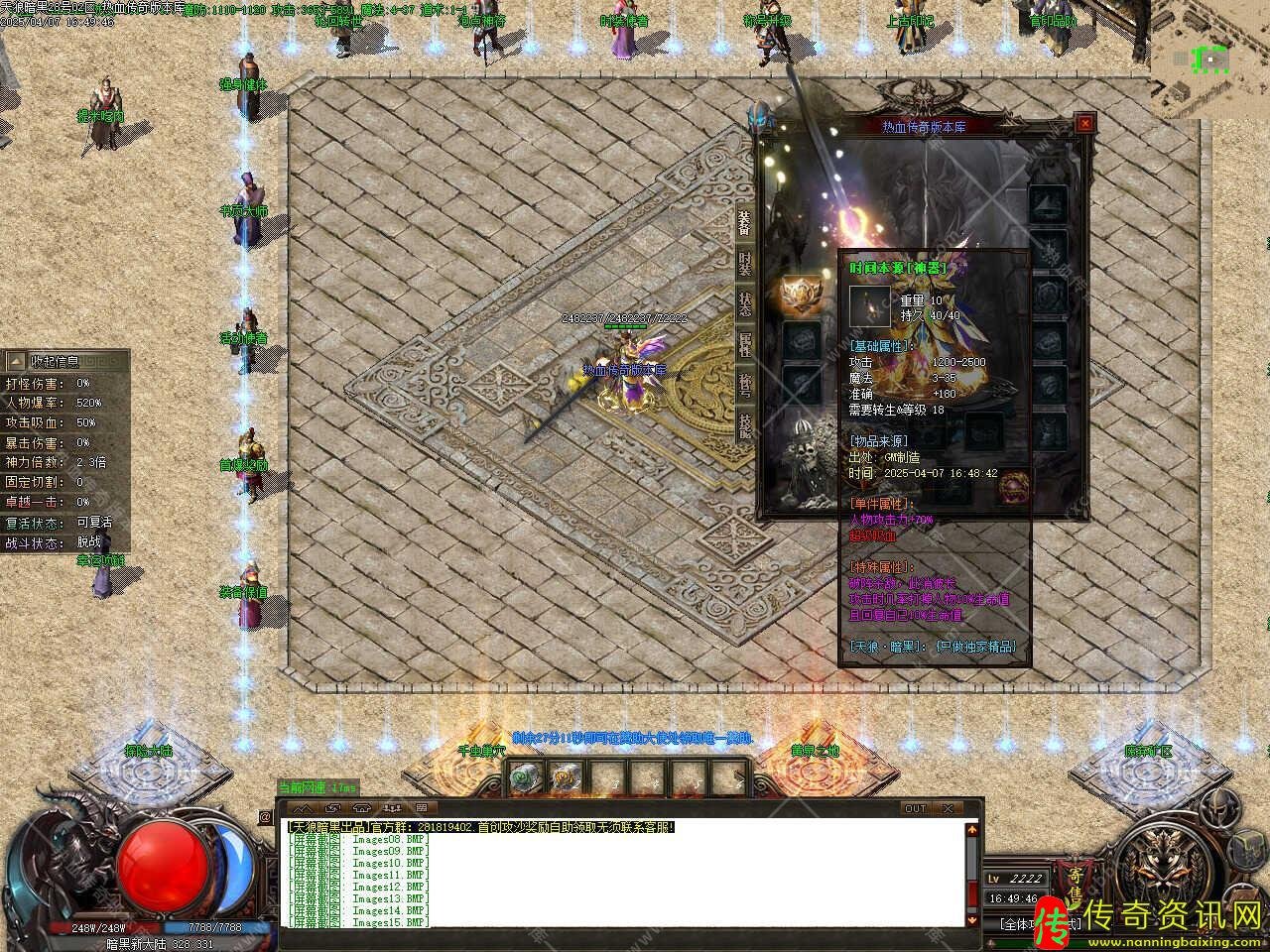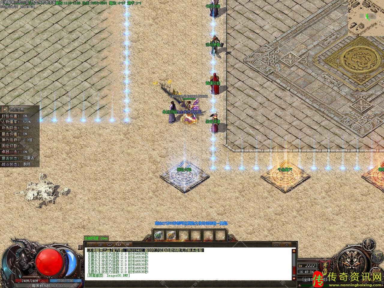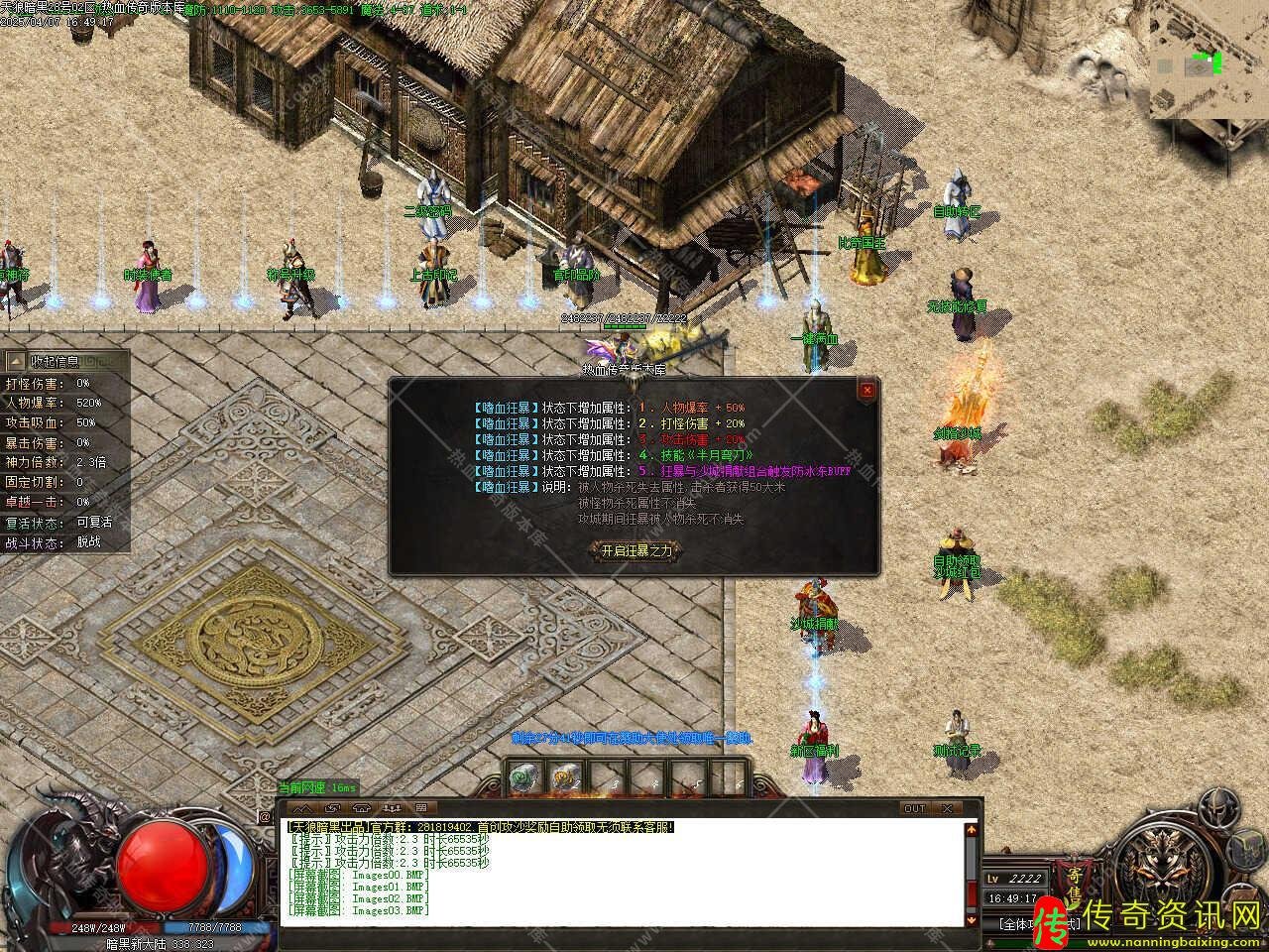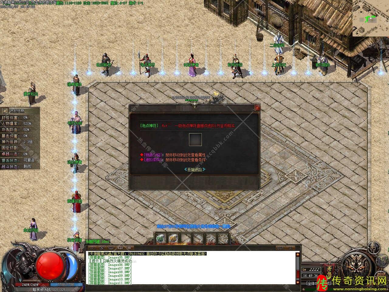 版本介绍:本服玩法简单易懂无坑,所有装备全部靠打,散人好发展,简单耐玩,高爆率惊喜连连,打怪狂出光柱,新增自动捡物、自动回收等功能。