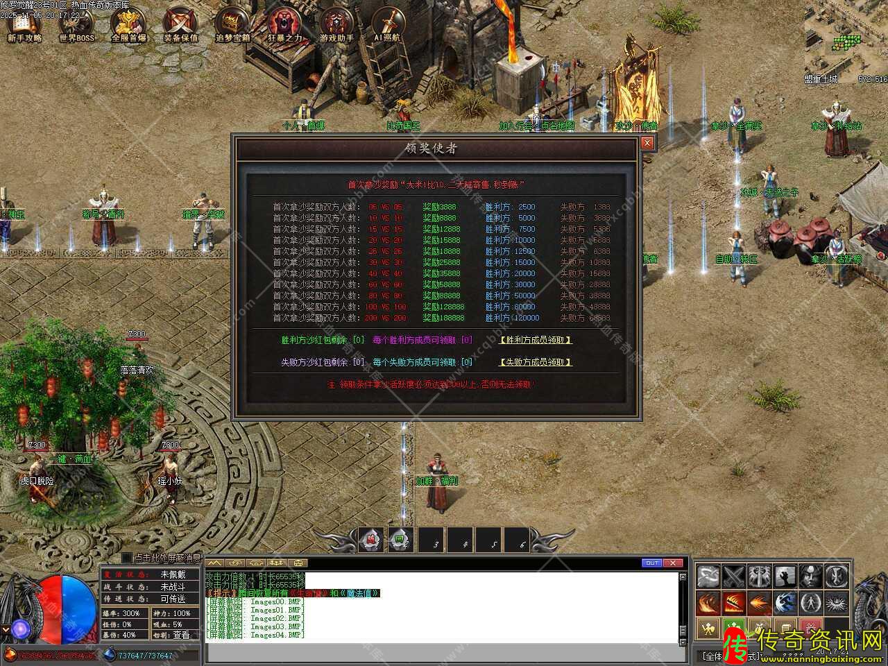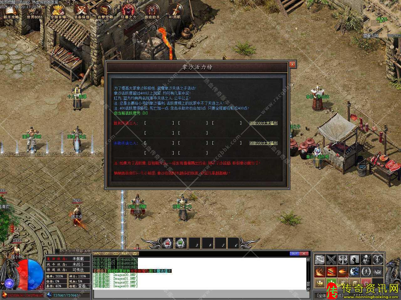 四.添加活跃值玩法,在攻沙区域,每待一分钟获得1点活跃值,在攻沙区域打掉对手加3点活跃值,在NPC那可以查看自己的活跃值,20:00-22:00期间才能获得活跃值,每分钟刷新一次,注:攻沙2小时期间活跃值达到300点才能领取沙奖。