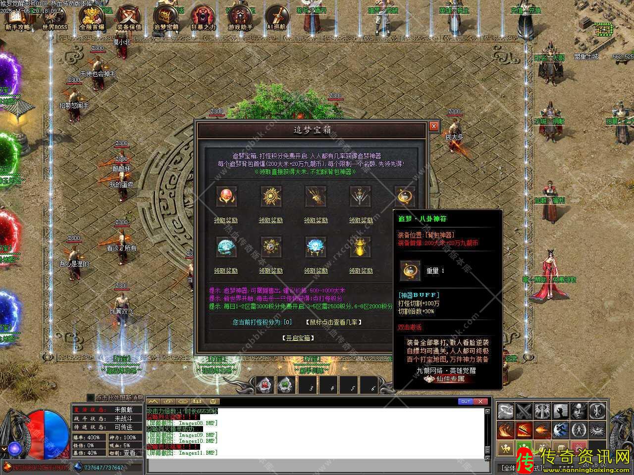 七.此版本也有等级突破功能,300级以后在二大地图中有等级提升NPC,可以帮你将等级突破屏障,最高帮你突破到600级,300-600级需要命运之书材料3个和10万元宝,高等级玩家可以使用野蛮技能定身低等级对手1秒,十步一杀50%几率定身对手2秒。