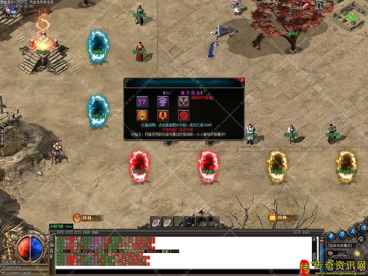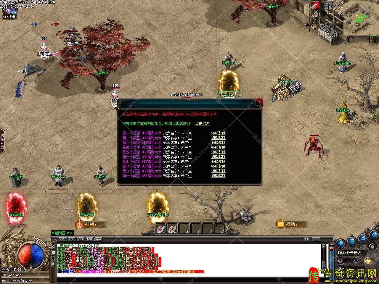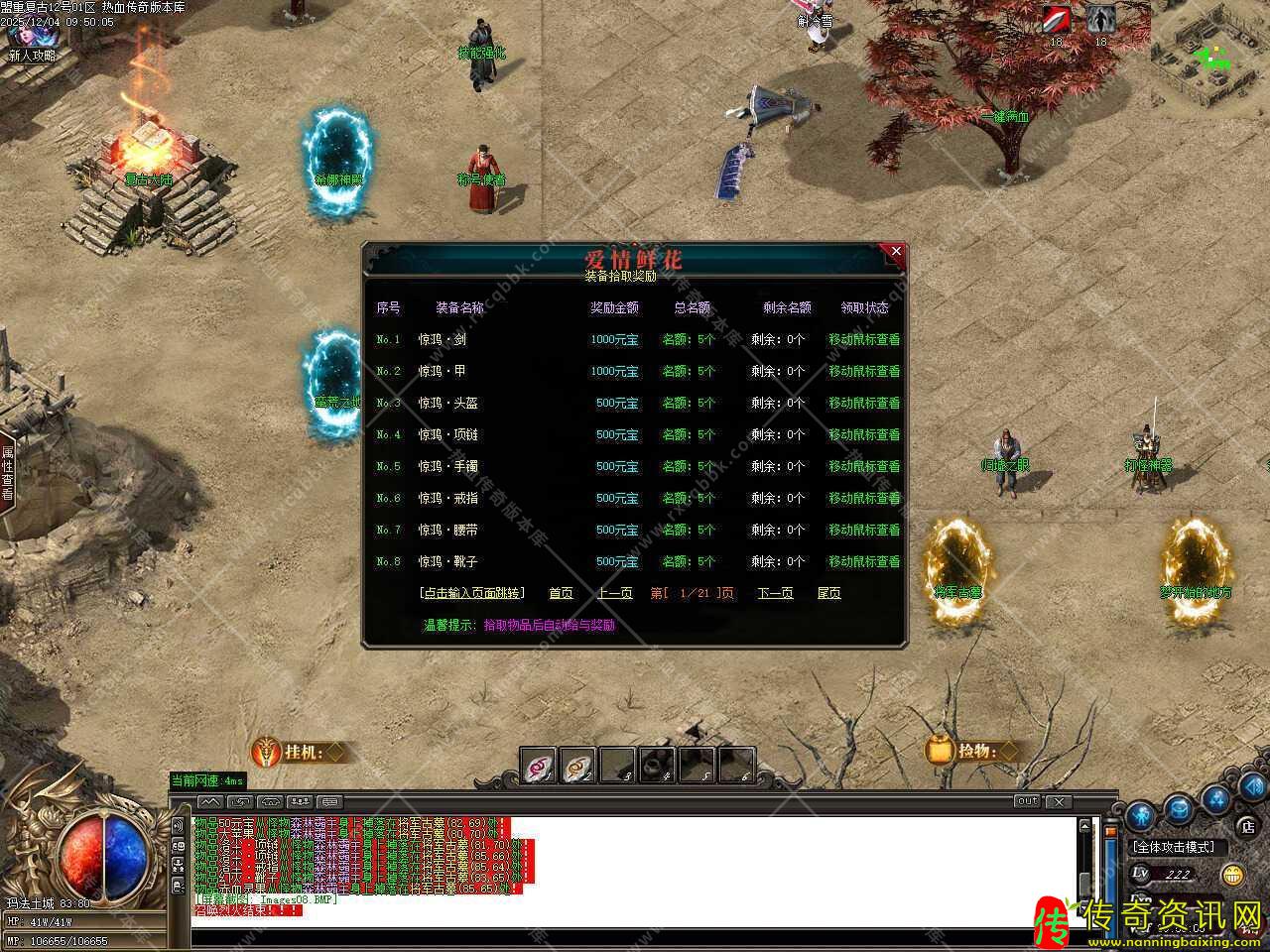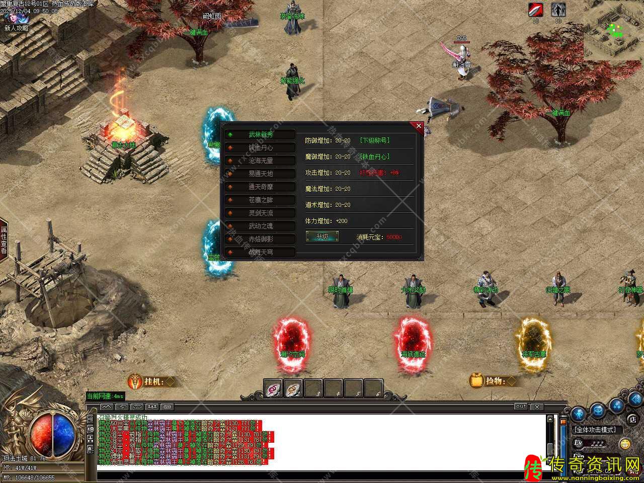 四.添加江湖宗师NPC,在那里可以用材料贴子兑换奖励,1个贴子可兑换两千万经验,能升到100级;1个贴子可兑换五千元宝,散人玩家的专属;50个贴子可兑换护体神盾,超级防御。温馨提示:所有地图都有掉落贴子材料,其中福利怪必爆一个。