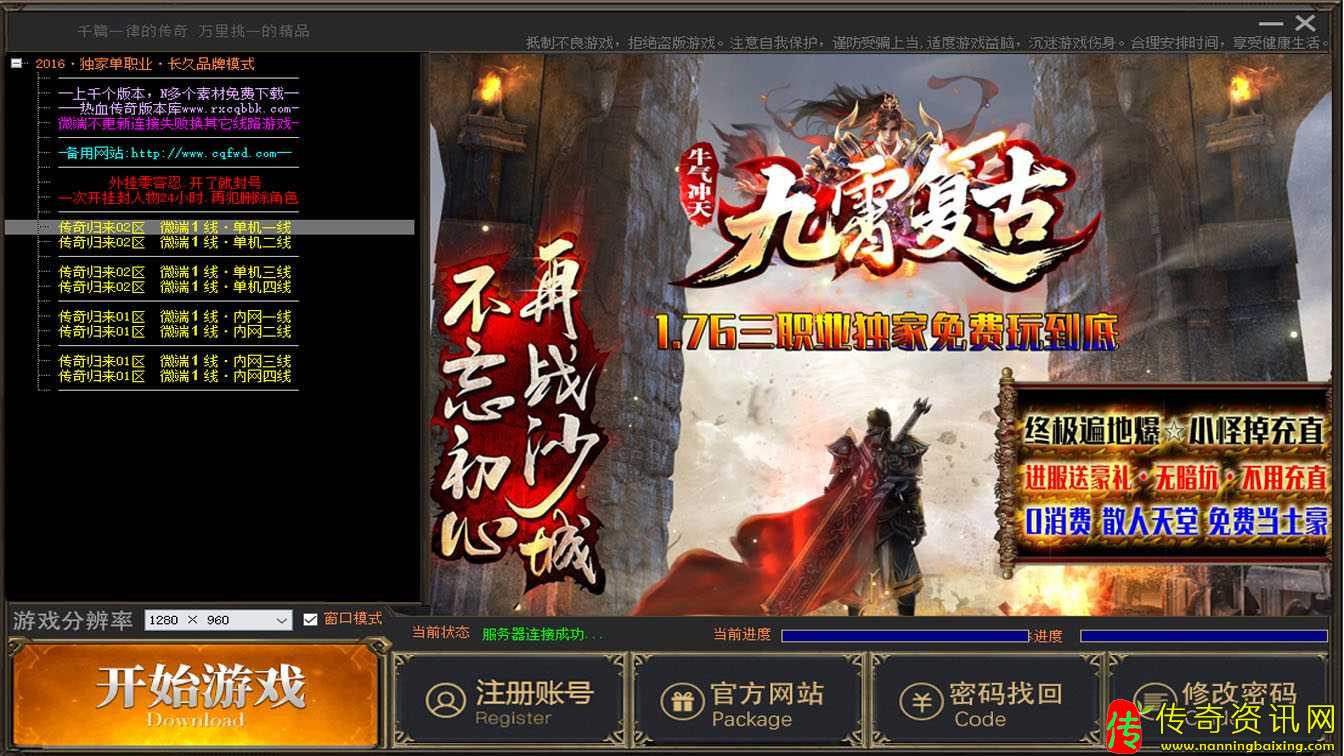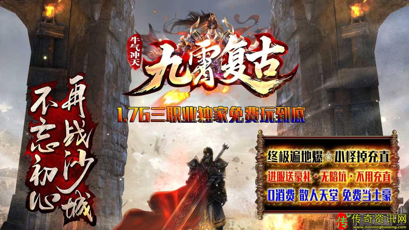 二.1.76复古小极品,上面增加,魔龙套,狂雷套,无名套,无双套,共四个大陆,一个庄园,武器幸运9触发最大伤害,打怪PK必备。