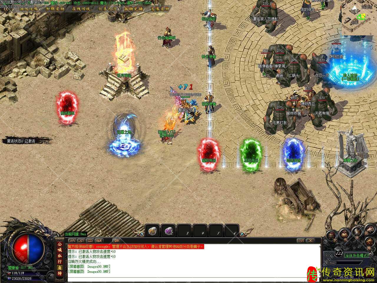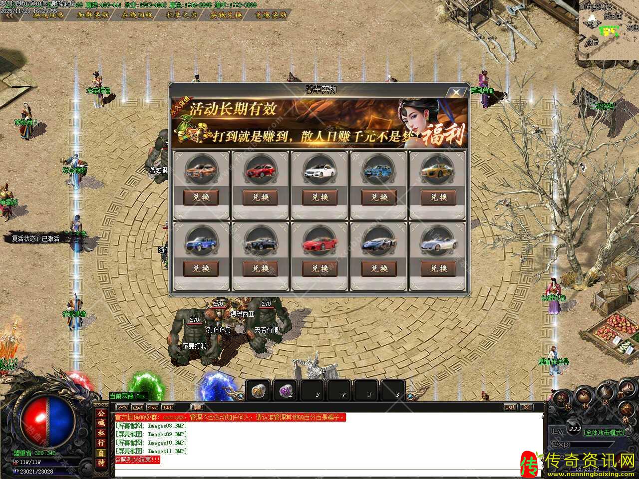 六.添加活动行会争霸战,每天晚上20:00-21:00分,激战60分钟,需要50级以上,所有玩家均可进入参加地下夺宝,活动期间地图内玩家每秒增加经验100W以及神秘福利,合区后每晚20:30刷新一只行会争霸BOSS,最终获胜的行会的老大额外奖励金砖一个。