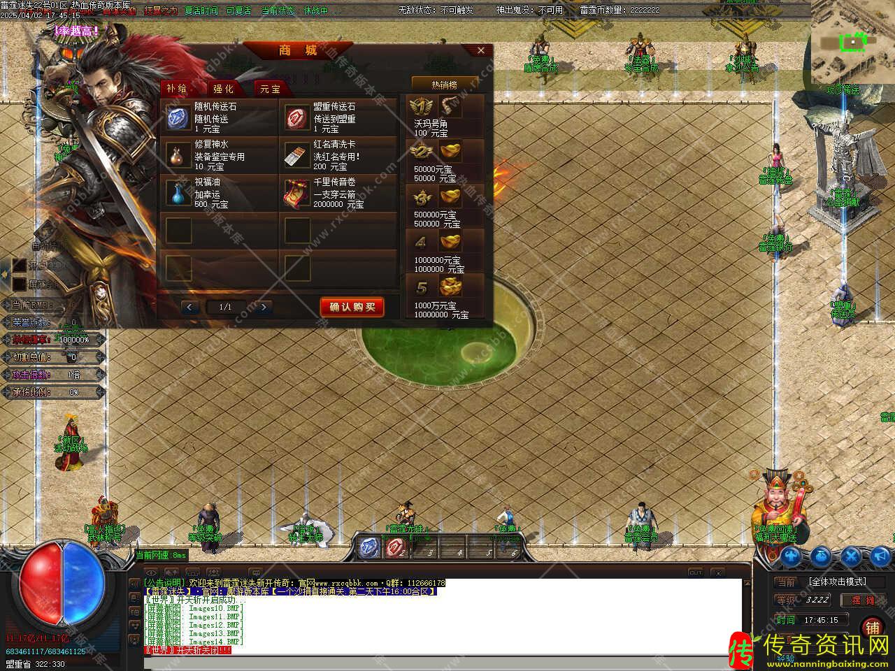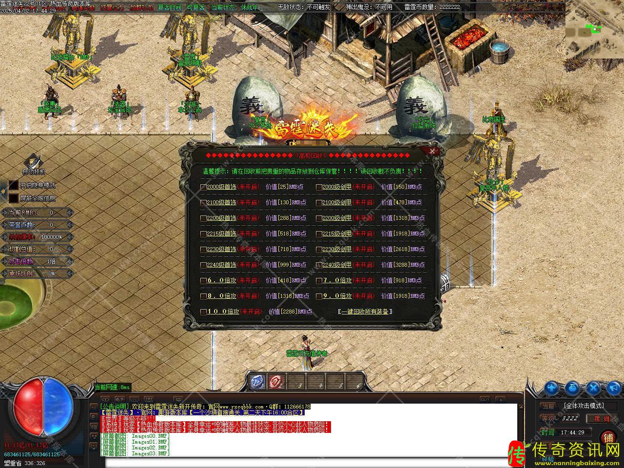 版本介绍:本服当天新区第二天下午合区集体拿沙,奖励丰厚!首区合区清理1500级以下小号,老区合区清理1500级以下三天未登陆的号。