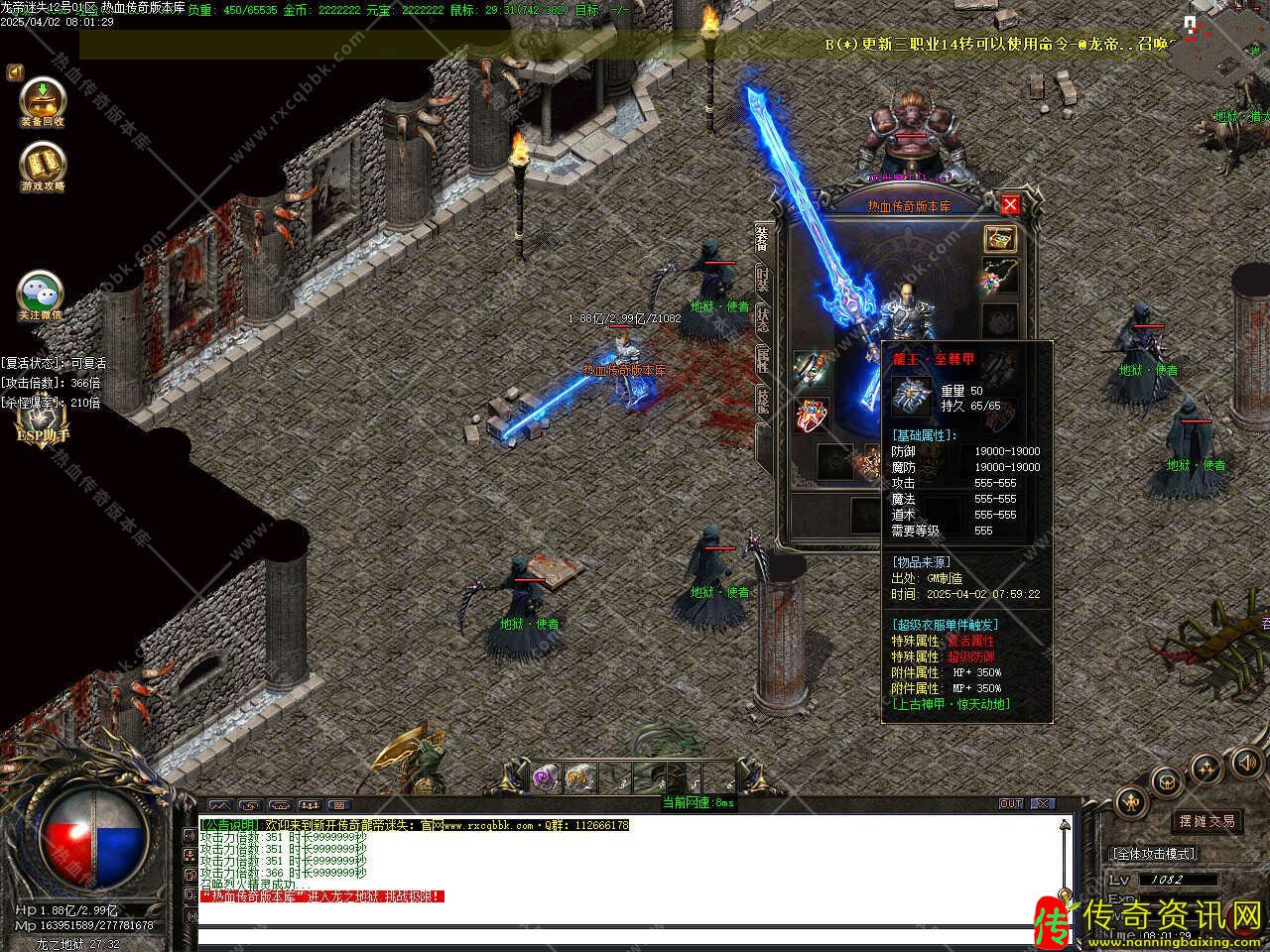 版本介绍:新增狂暴功能,开启狂暴需要50万元宝,开启狂暴状态人物头顶会有专属图标,游戏小退、大退、被怪打掉的情况下狂暴不会消失,开启获得0.2倍攻击+爆率+5%+暴击+10%专属地图。