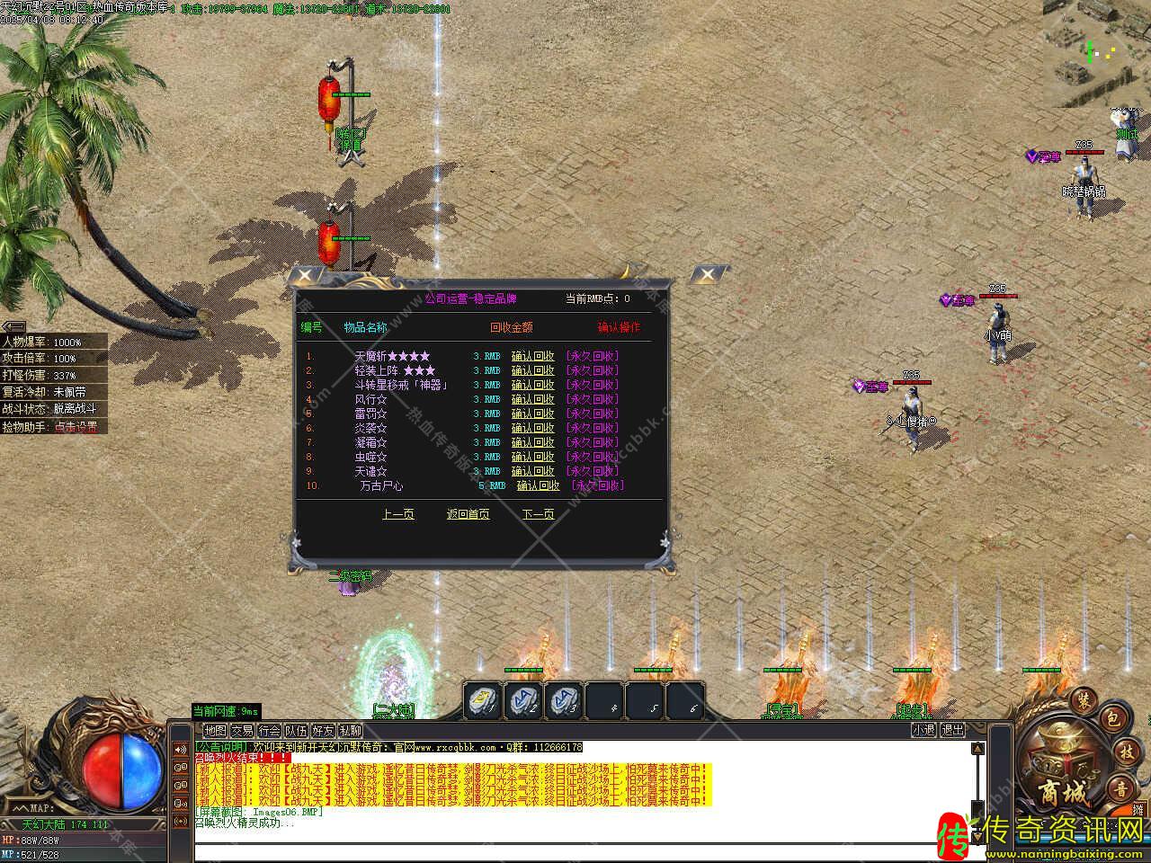 版本介绍:天道之外,轮回之中,六道天藏,转世而生,转生材料在各地图均有掉落,每一次转生基于倍功,10转后人物需要达到150级以上方可转生,17-19转材料可以用天精石或者元宝兑换,材料互换两个相同的材料=1个材料。