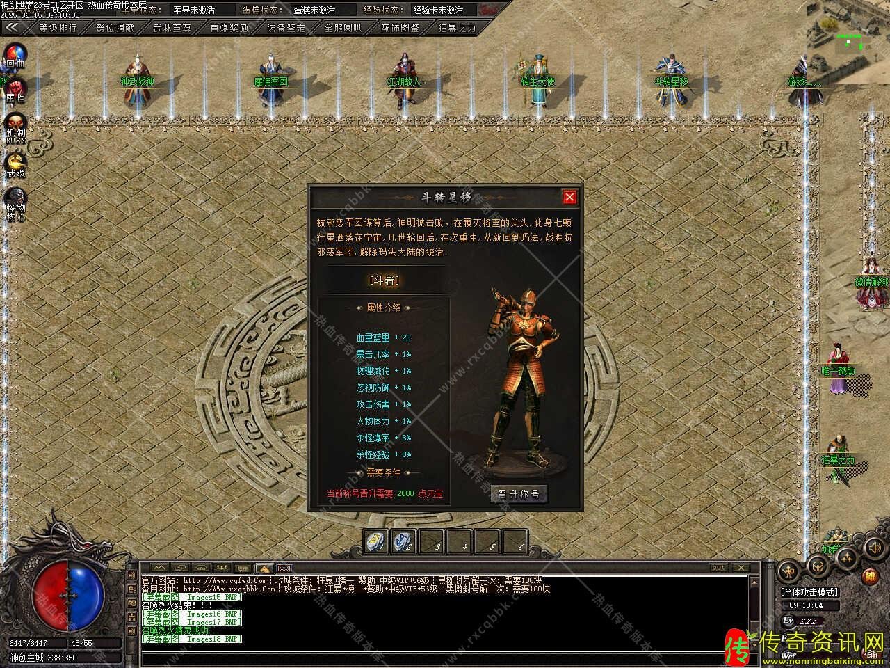 神创世界单职业热血传奇sf发布网传奇gm版本库基地 admin 2025年10月26日 16:38 254 0 一、此传奇sf发布网服务器端是一款单职业版本,玩法和装备有点偏复古,使用的是新GOM引擎,无需插件,补丁大小11.13GB,PAK补丁全部一次加密,游戏兑换码666888。 二、剑甲魔化碎片可以打造成品,怪物也可以直接掉落成品,兑换成品碎片需要收取一定元宝,每个账号限定上限兑换8次。 三、新增装备强化功能,成功率50%,强化一次需要金币3000万、加星强化卷50个,全套强化+8激活全属性+6%,打开NPC点击对应装备位置,可选择强化部位。 四、新区第3天下午12-14点合区,晚上20点-22点拿沙,官方安排指挥,为了游戏合理激情,统一听从红蓝方指挥分配,捐献60%胜利方,40%失败方,首沙奖励在红蓝方集合地领取,合区后攻城奖励请在22:10 之前领取。 标签: #sf发布网 #热血传奇 #版本 #引擎 #基地 #职业 #世界 #传奇sf发布网