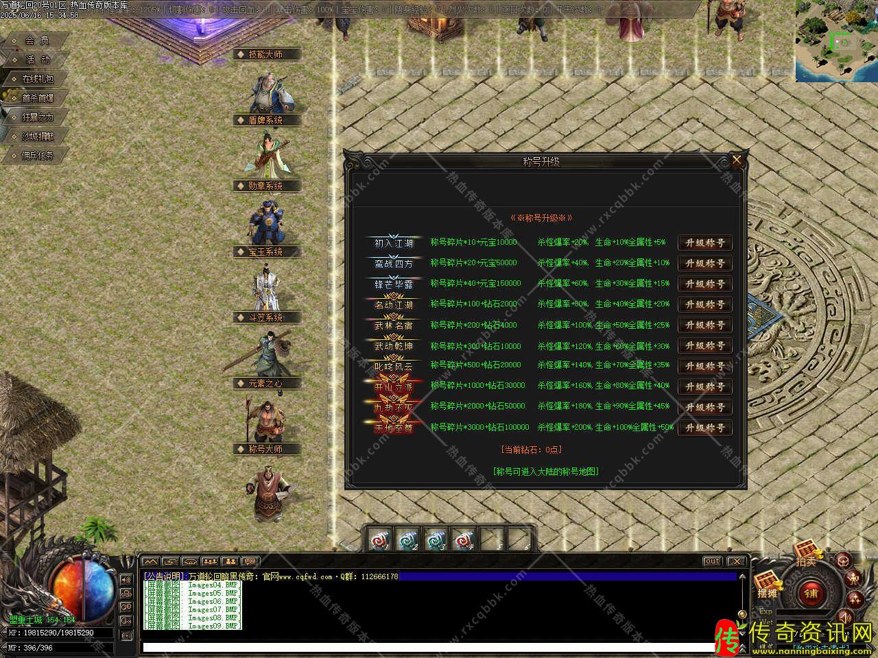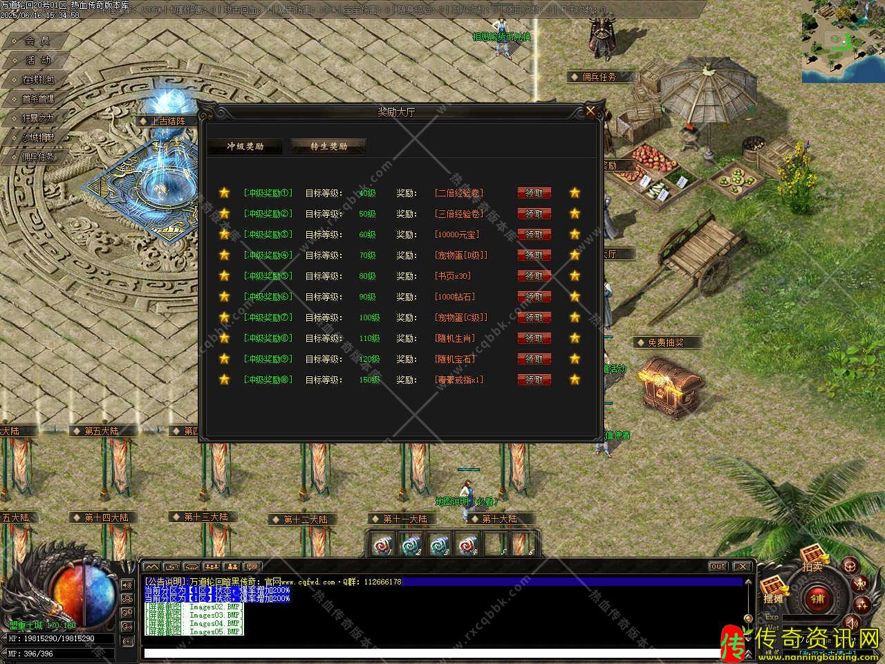 五、土城右上角NPC(材料合成)处,用元宝买二倍经验卷,三个二倍合一个三倍,三个三倍合一个五倍,吃上五倍打怪,前期想升级快把经验勋章升到十级升级就够快了,珍宝商人处卖的经验卷不要买,浪费钻石。
