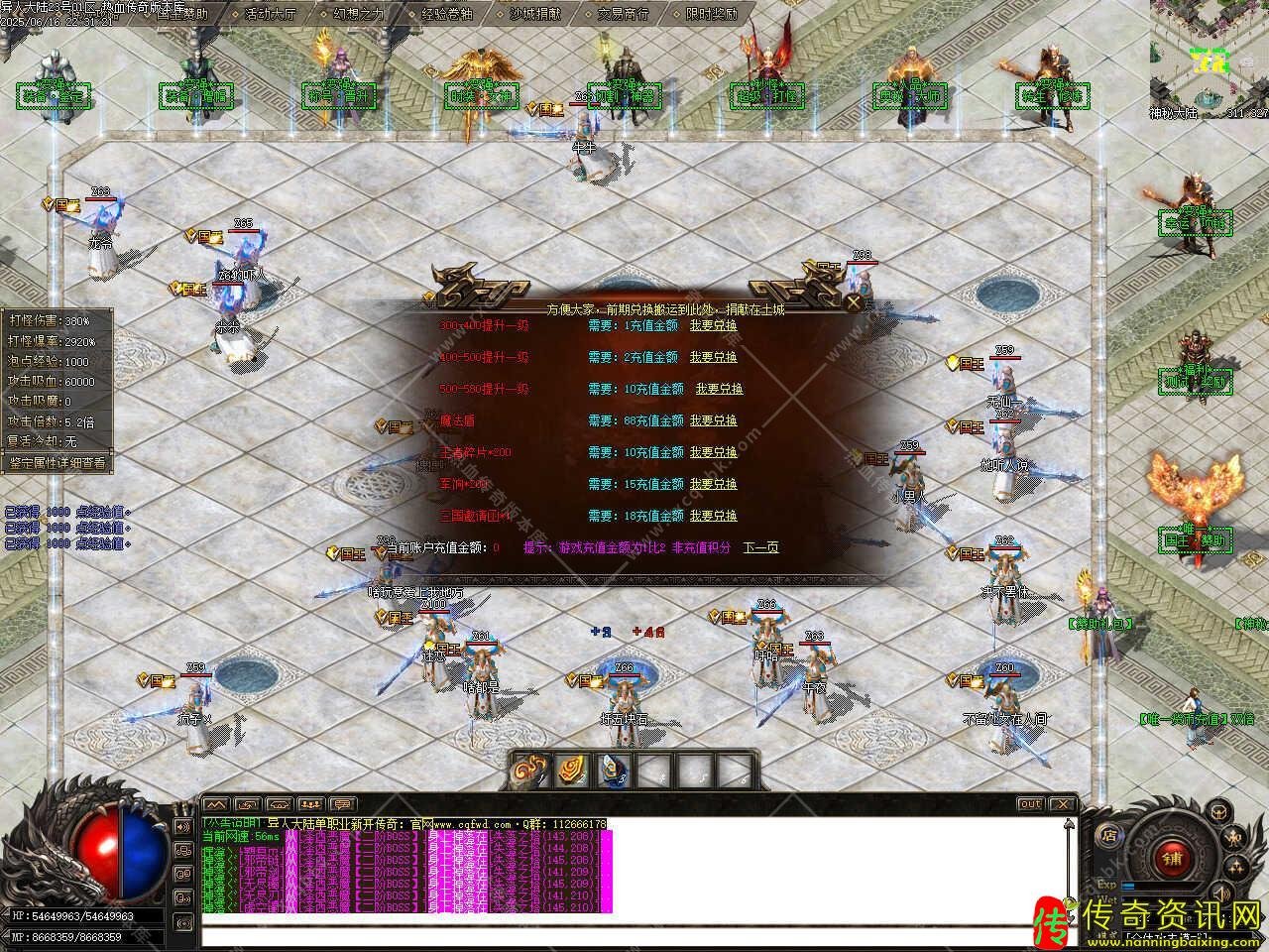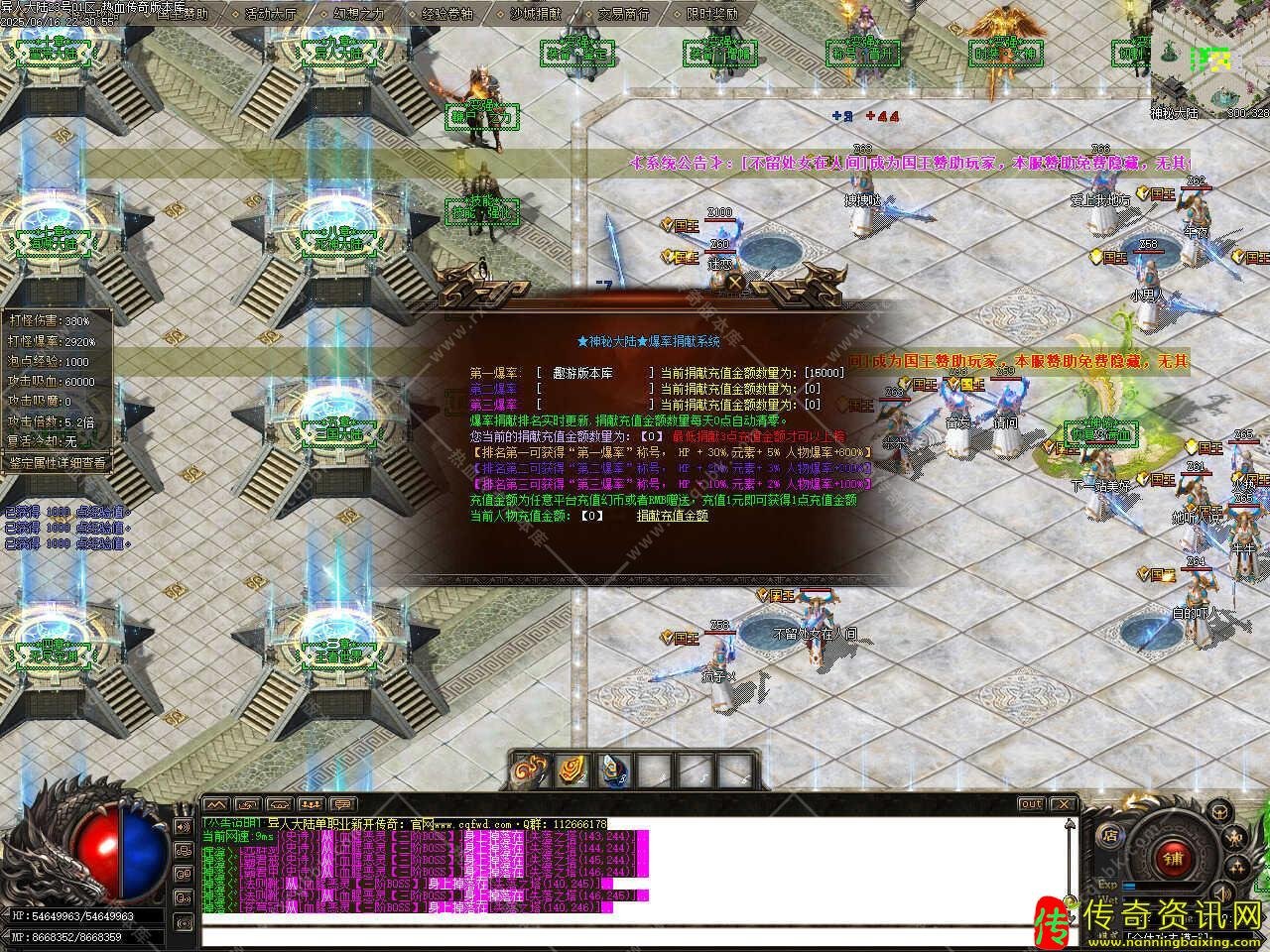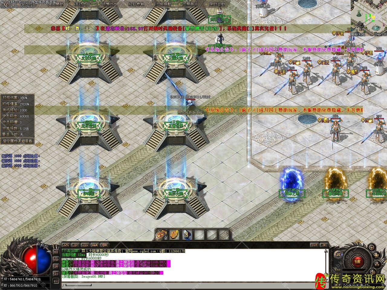 四、此服务端等级提高到999级,本次更新等级难度降低,不在强调等级得重要性。装备BUFF大幅度优化,所有属性BUFF全部重做,不会再有火影装备秒掉其它装备套的问题,PK更均衡。