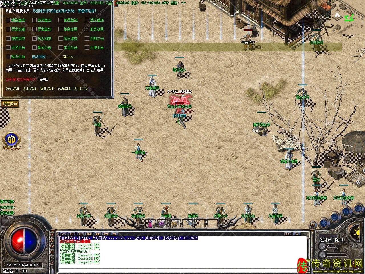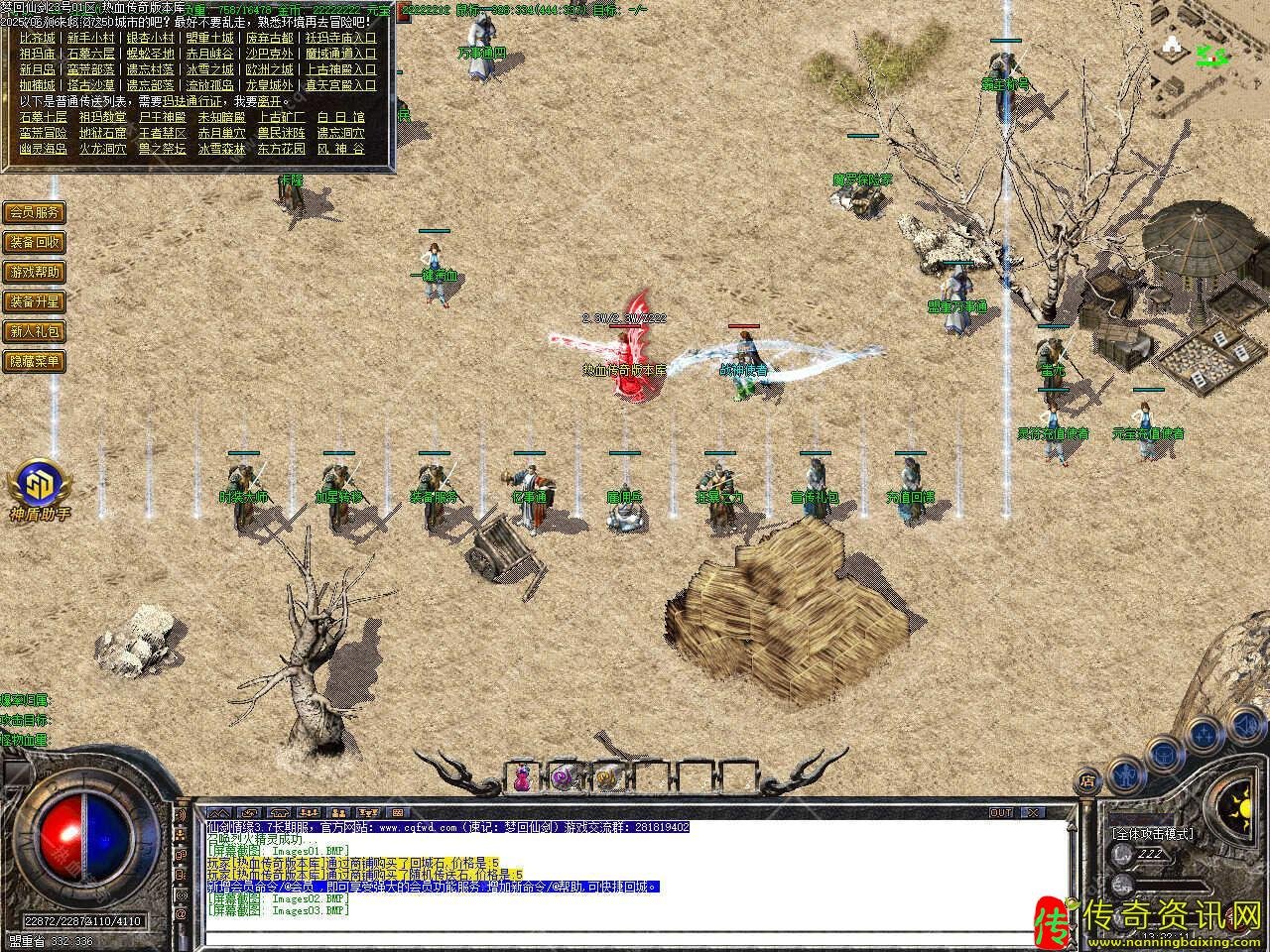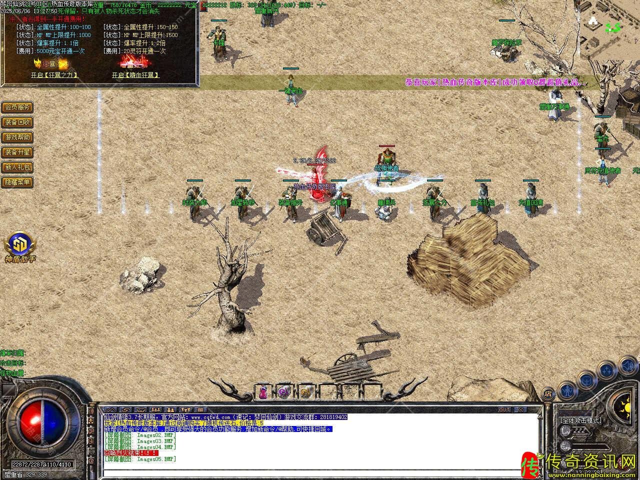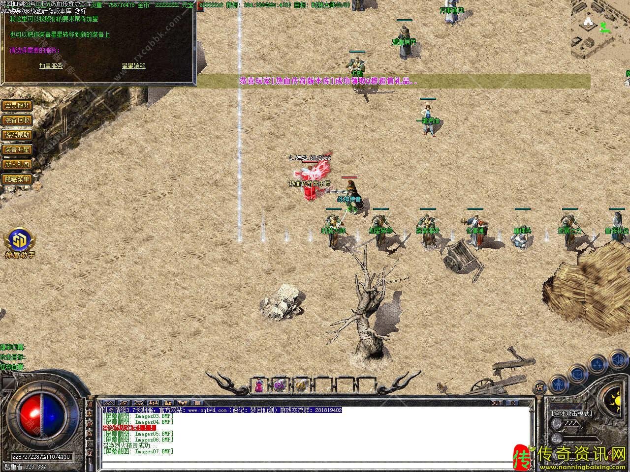 三、新增会员命令/@会员 ,即可享受强大的会员功能服务.增加新命令/@帮助,可快捷回城,高级装备,10万,20万,30万BOSS爆出,终极装备在人形怪,50万,80万BOSS等怪身上爆出。