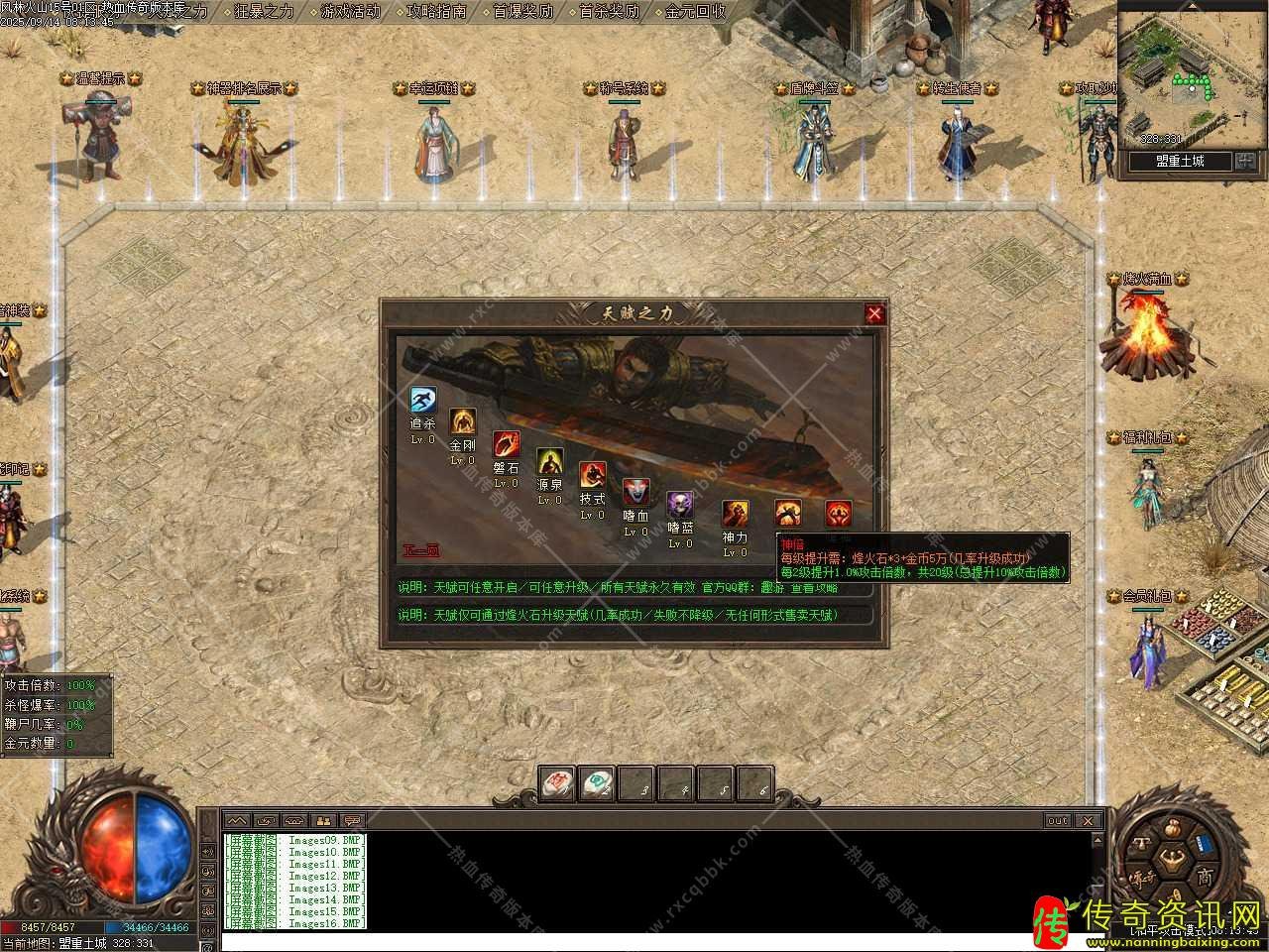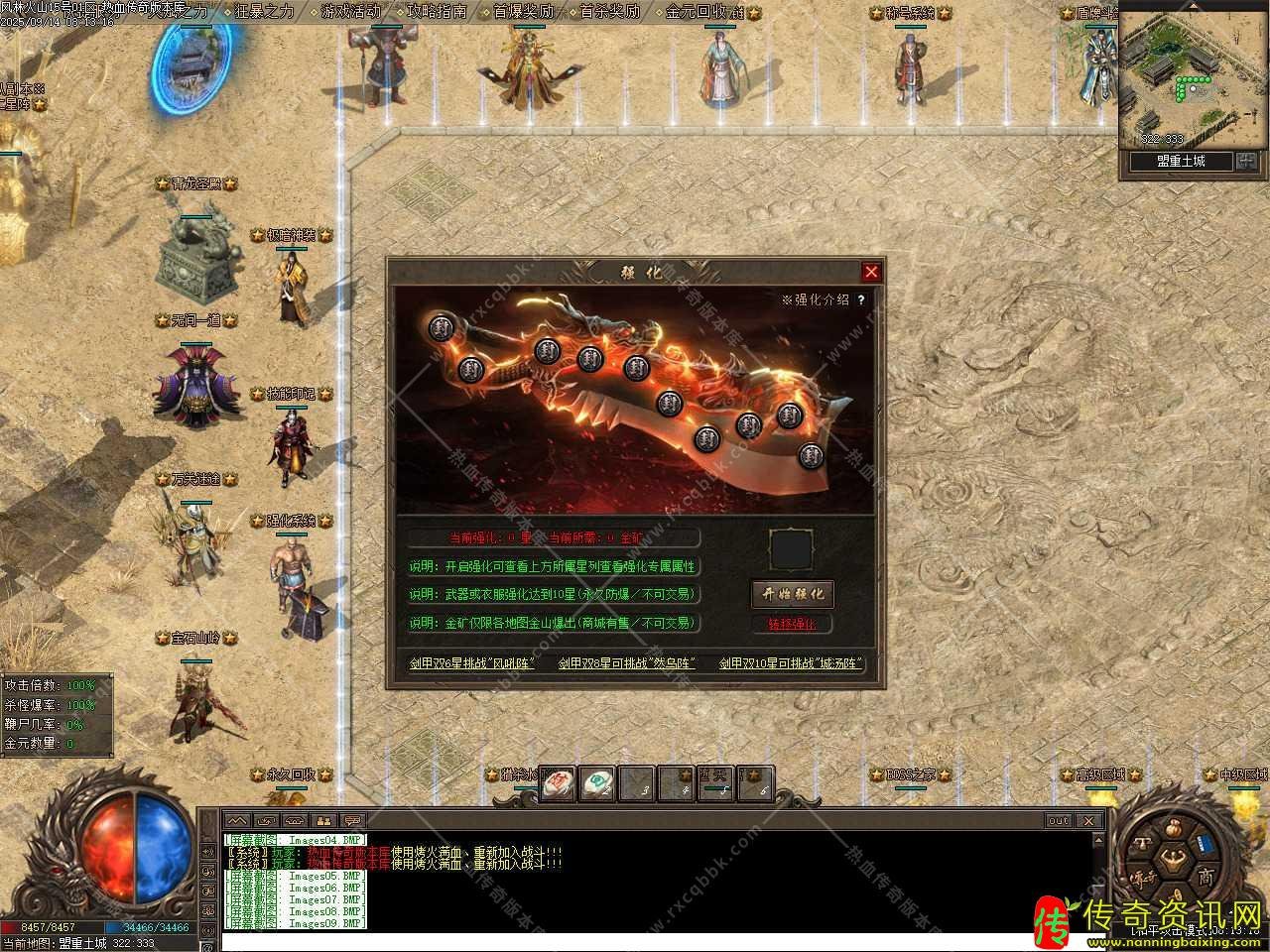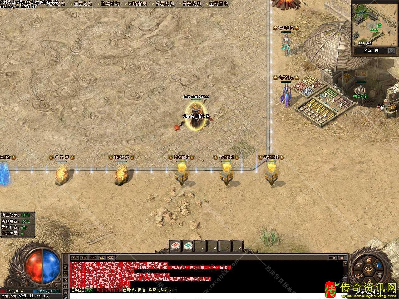 三、本服元宝与金元比例都是1:10,100级前打怪升级,各种BOSS无限刷,金山经验较高,100级后烽火石升级。