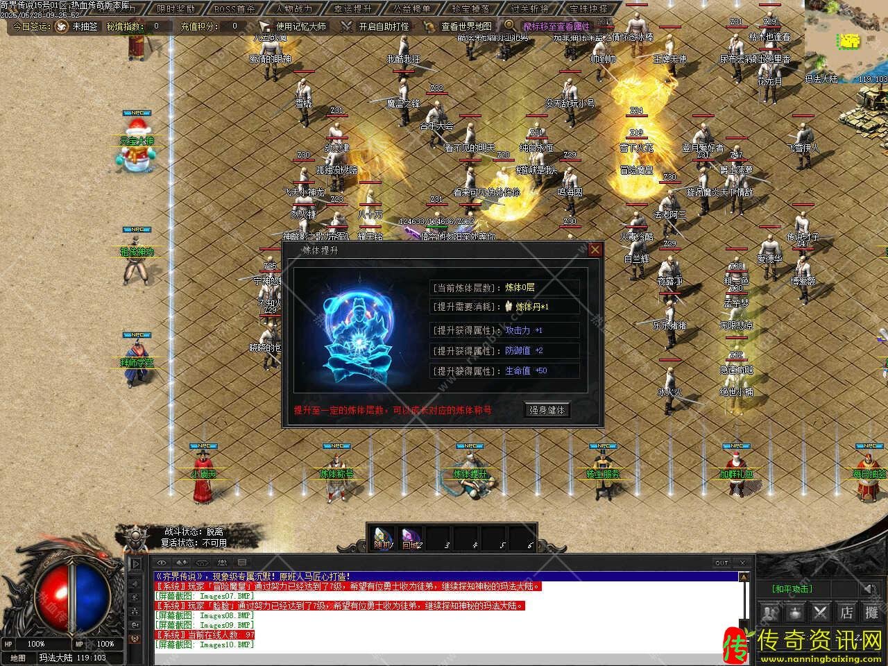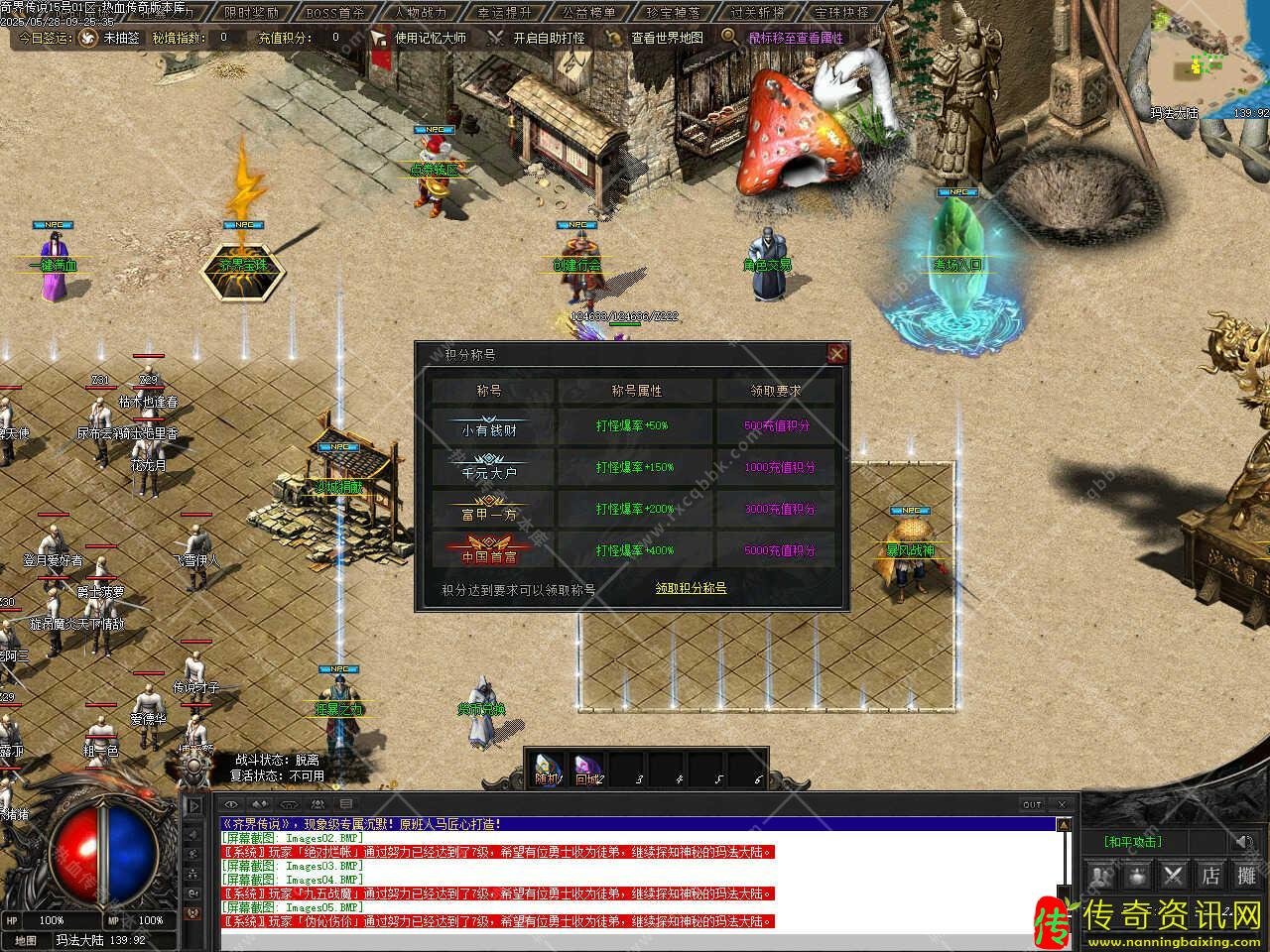 六、此传奇版本中有多个大地图,每个大地图设置要求不一样,同时每个大地图中有些功能也不一样,在游戏时可仔细看一下各大地图中的NPC设置和功能,以免需要时找不到相关功能要去哪个NPC那里,更多的功能和玩法请进版本中查看哦。