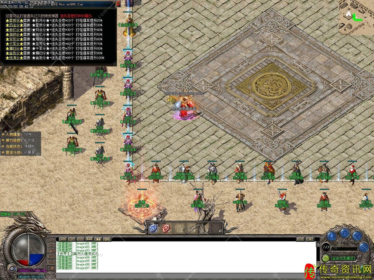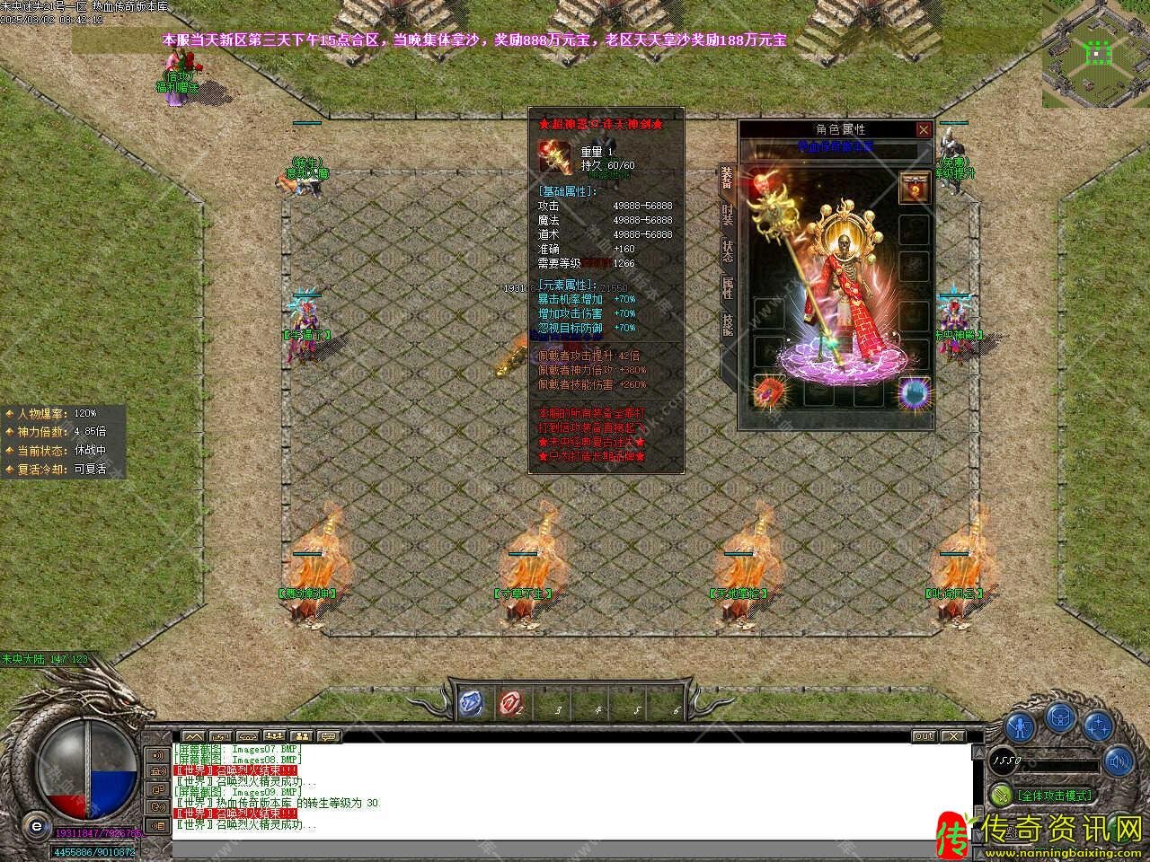 版本介绍:新增新区福利地图,boss零攻击零防御,每三小时开启一次,奖励神力装备、特殊装备、神器装备等,怪物0攻击,0防御,爆全服所有物品,需要14转才可以进入此地图。