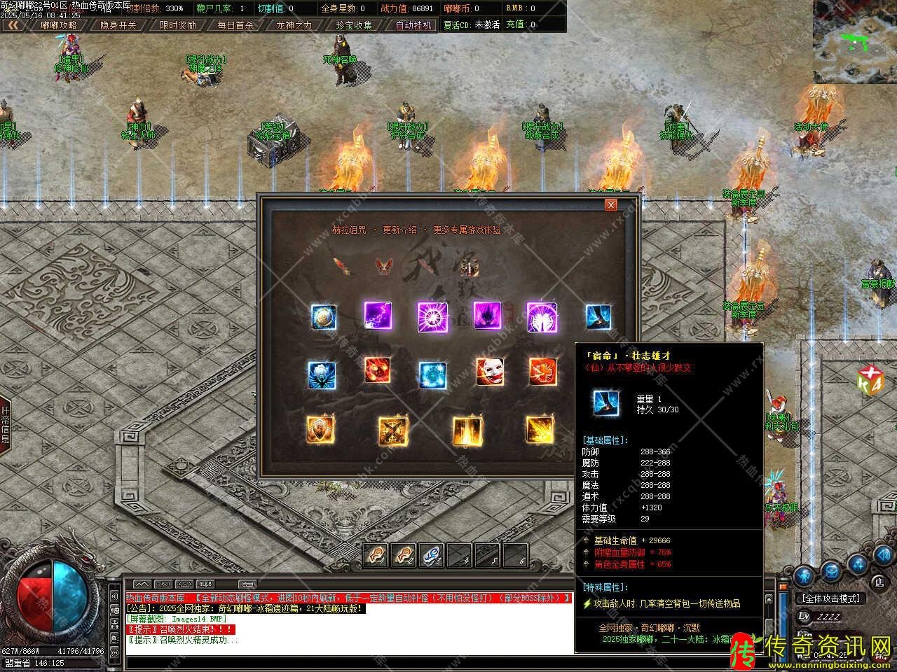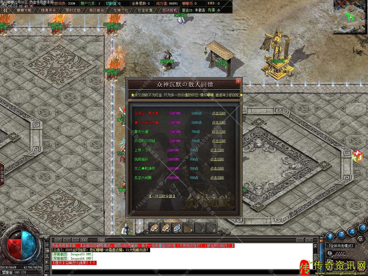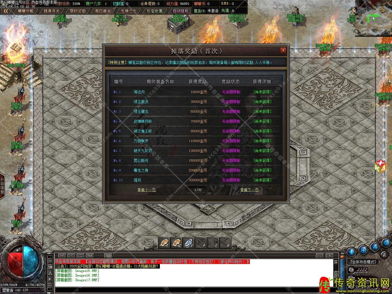 版本介绍:此传奇服务端属于沉默类型的版本,全新的UI界面制作,限时奖励,每日首爆等助力新手发展,此版本补丁有7.14GB,游戏兑换码是666666或888888。