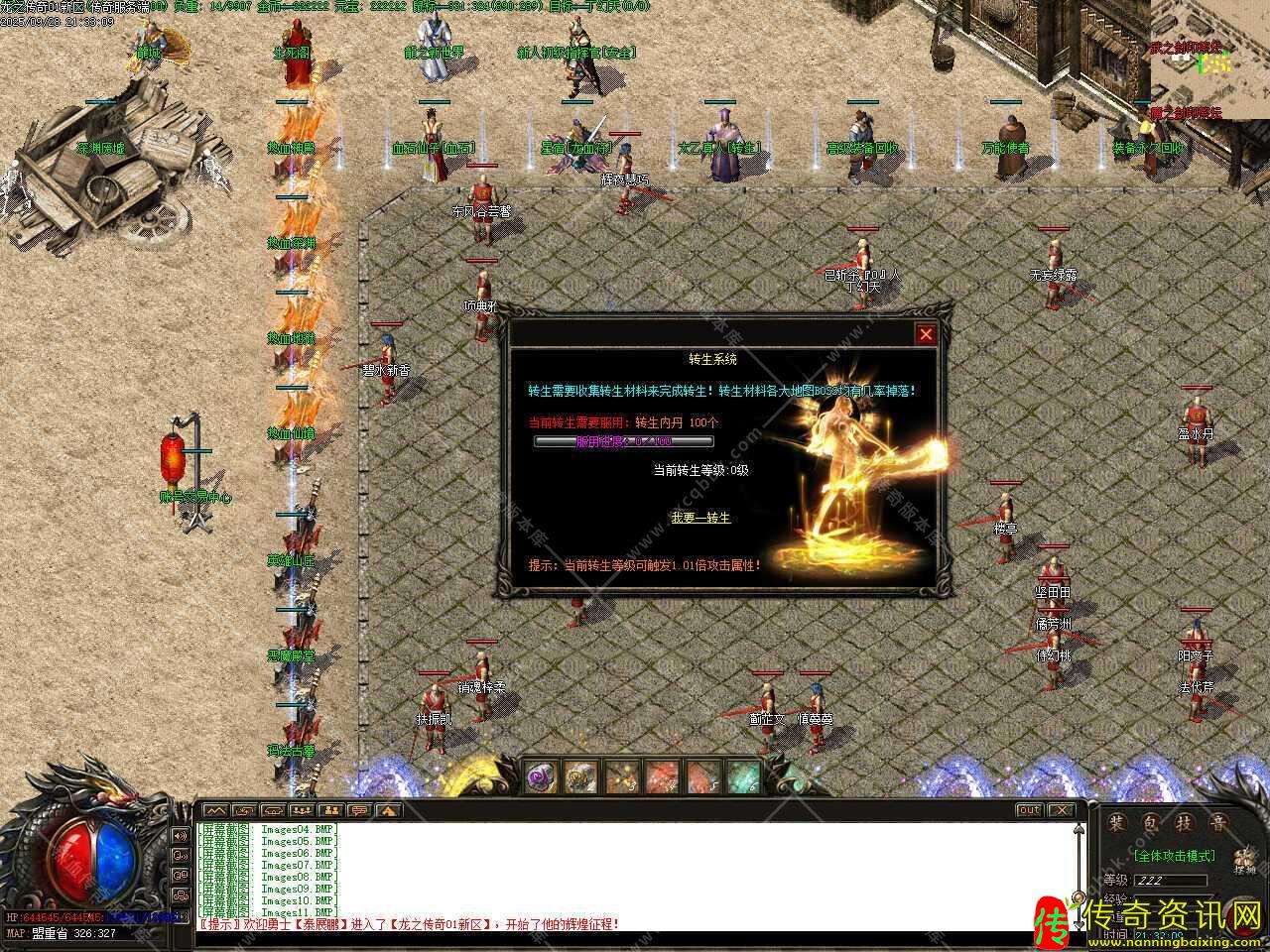 三、新增龙城地图,各大BOSS将全部出现在龍城里面,新手发展必去之地,里面十分危险,进去之前考虑好!勇士,经典色彩沙城地图,回味经典,主要爆战神系列、狂战系列、炎龙系列、狂龙系列、火龙系列等等,需要51级和7000元宝才可以进入。