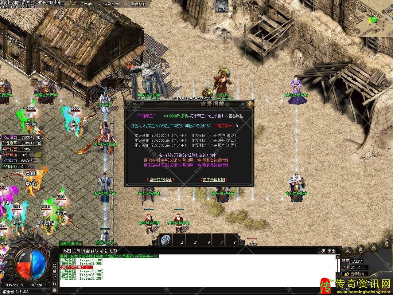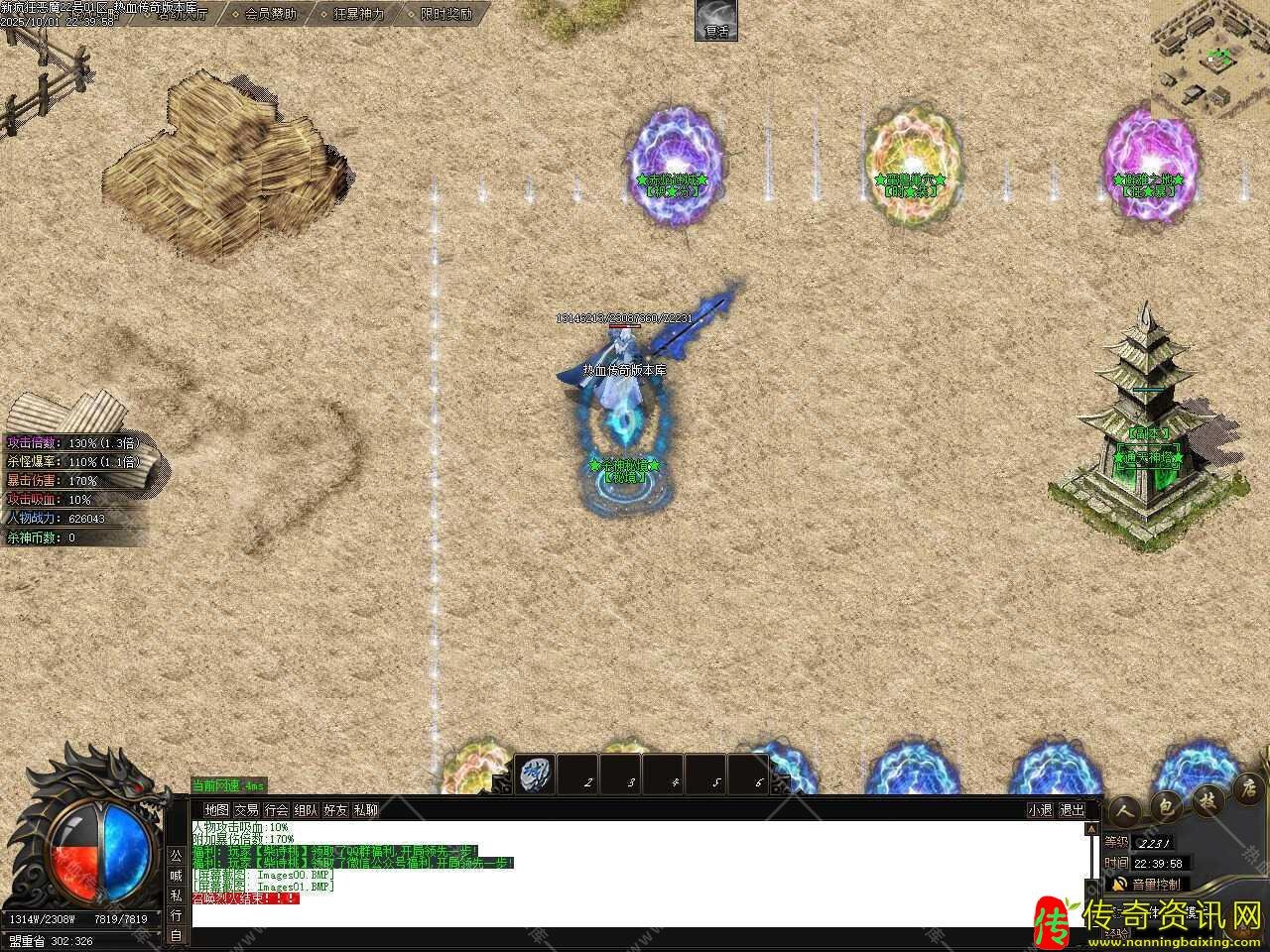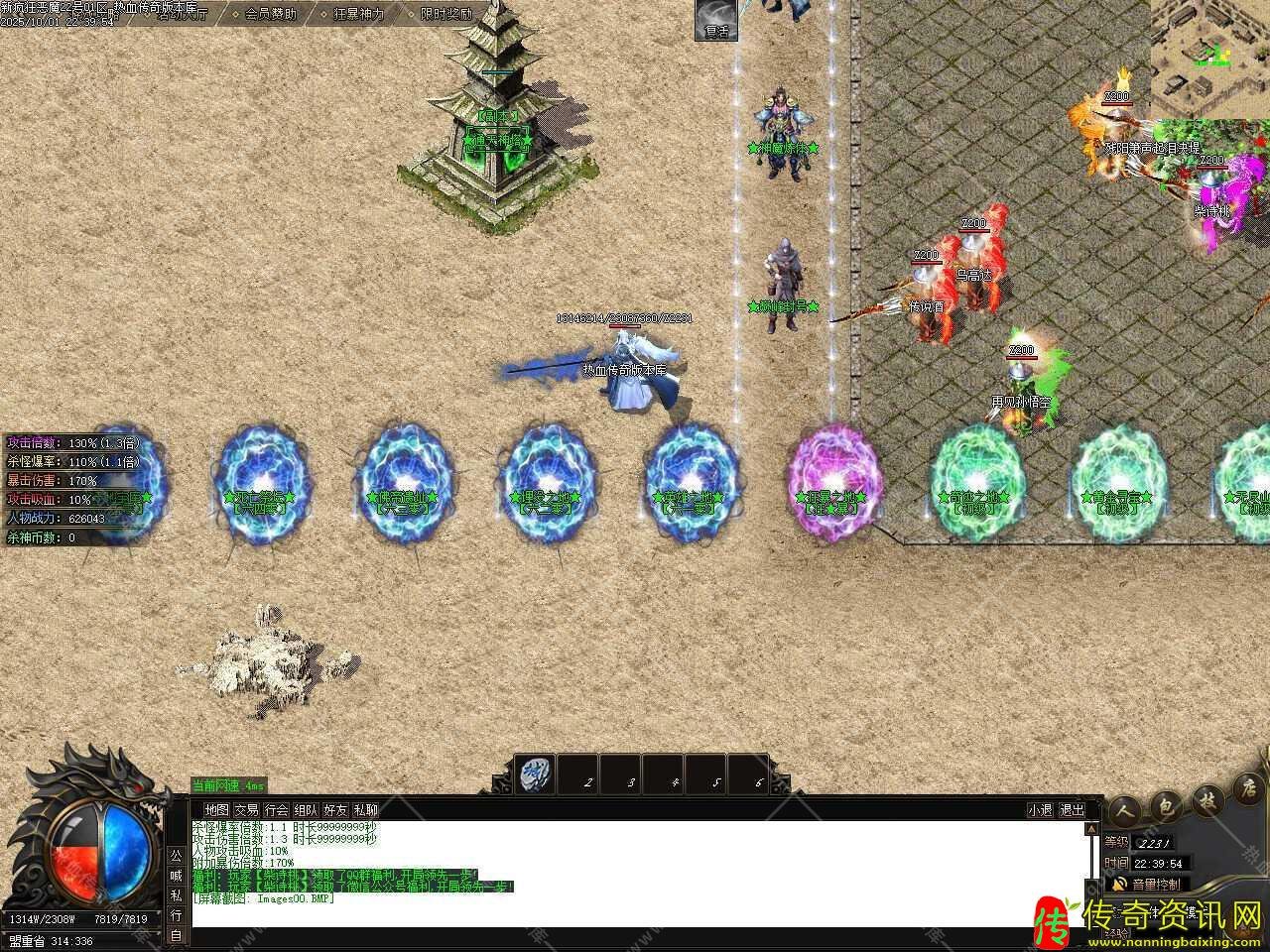三、添加闭关泡点功能,免费安全泡点普通玩家每秒获得500W经验,只能在土城安全区泡点,最高可泡到600级,之后请选择随身泡点,元宝随身泡点快速升级,走到哪泡到哪儿,每秒收取50元宝,每秒获得8888万经验,最高可泡到650级。