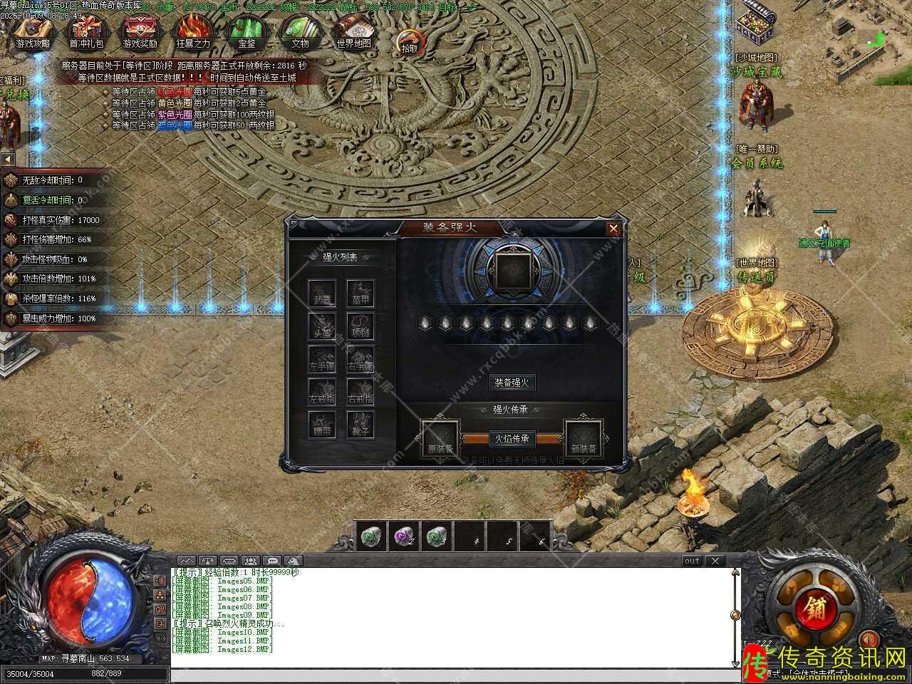 四、开放狂暴之力功能,激活狂暴之力需求100游戏点,被玩家打掉后会失去狂暴之力称号,对方获得50游戏点,攻城区域,被怪物打掉,狂暴之力称号不会消失,激活元宝回收加成50%、打怪伤害增加30%、全属性增加10%、全元素增加2%,激活后可获得技能十步一杀,攻击时有机率禁锢敌人2秒。