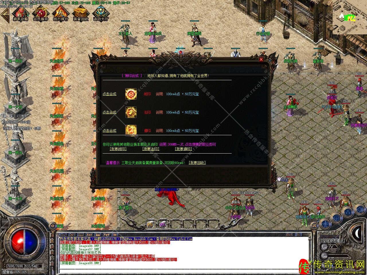 版本介绍:新手上线可加入Q群,进群不迷路,实时掌握本服最新动态,进群送豪礼,让新人跳跃式飞速发展,全属性称号以及三倍经验卷轴2个,还送龙魂珠LV.1、聚灵珠(大)、祝福油罐等。