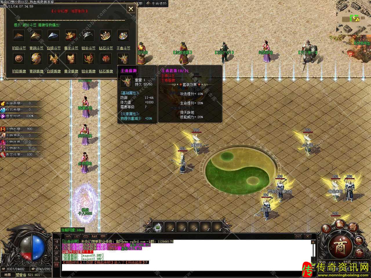 五.添加装备强化功能,重新强化极品攻、魔、道,元素不变,强化后攻击随机0-20点,魔道随机0-10点,能洗出最高攻击,每次强化需要10万元宝 ,强化时把需要洗练的装备放入对话框中即可。