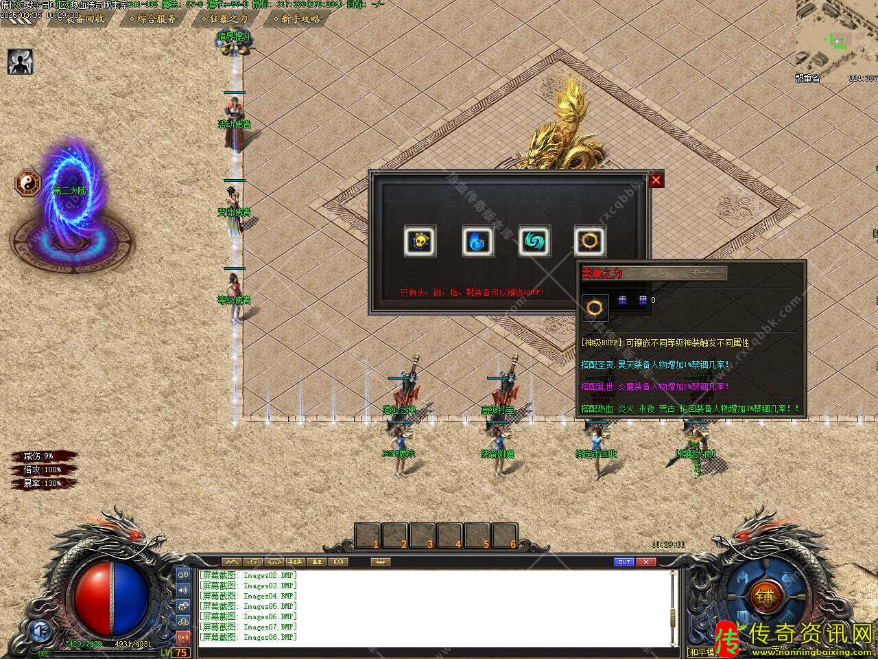版本介绍:此传奇私服网站服务端怪物分为白-粉-紫-黄-橙-红,以此排列等级,白怪最高爆出圣灵和血煞级别装备;粉怪最高爆出昊天和血煞级别装备;紫怪最高爆出热血沸腾和炎魔级别装备,底攻怪爆低保 高攻怪爆高攻,(爆特殊单件 紧箍咒 魔戒 神力手环,风神带和各种橙色剑甲,具体看是那个地图的怪就爆出那个地图出产的装备)。