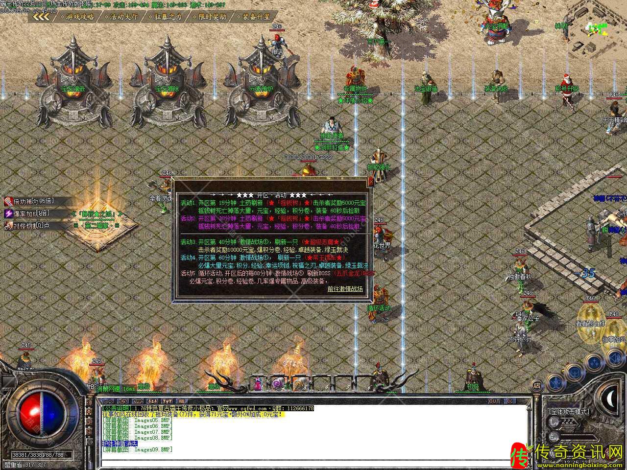 五、此版本中地图众多,进游戏查看,唯一一个会员赞助地图[开通新春礼包进入],前期发展力推,地图都是属于大型地图,各地图怪物充足,15分中一120分中刷新,终极BOSS两个小时刷新,点上一根烟,享受刷怪的乐趣吧。