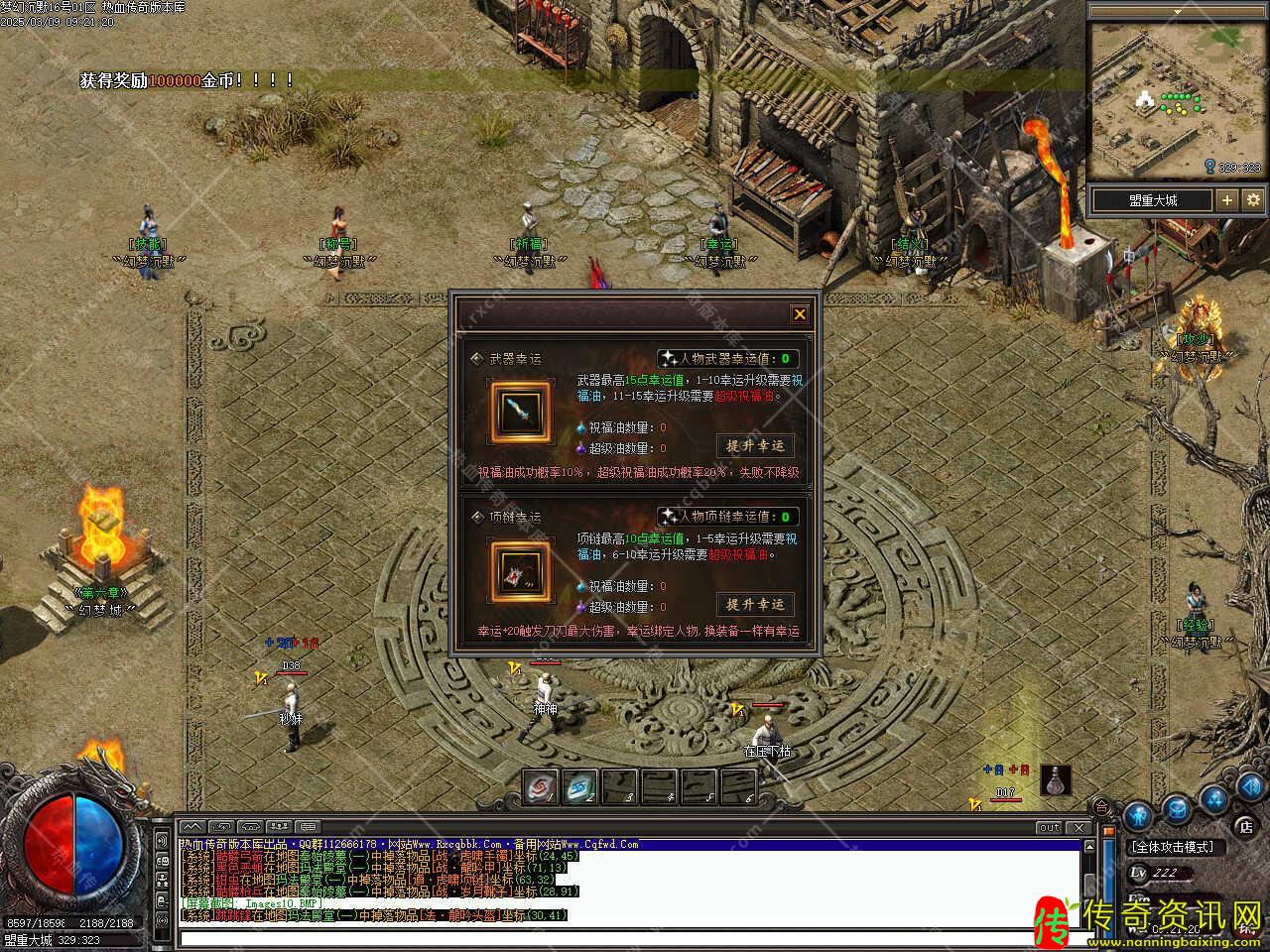 版本介绍:新增幸运提升功能,武器幸运提升祝福油成功概率10%,超级祝福油成功概率20%,失败不降级,幸运+20触发刀刀最大伤害,幸运绑定人物,换装备一样有幸运。