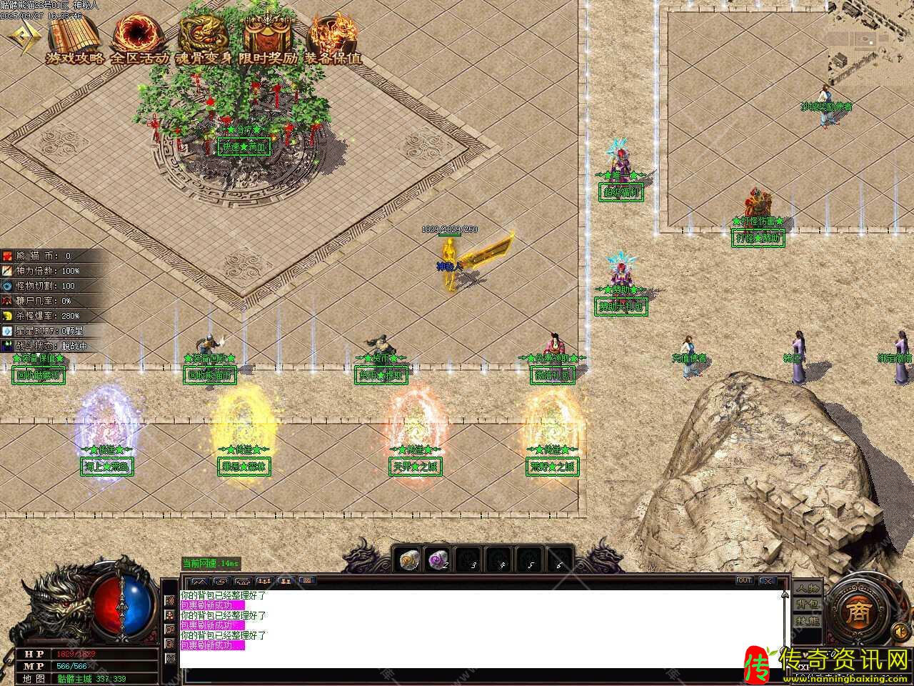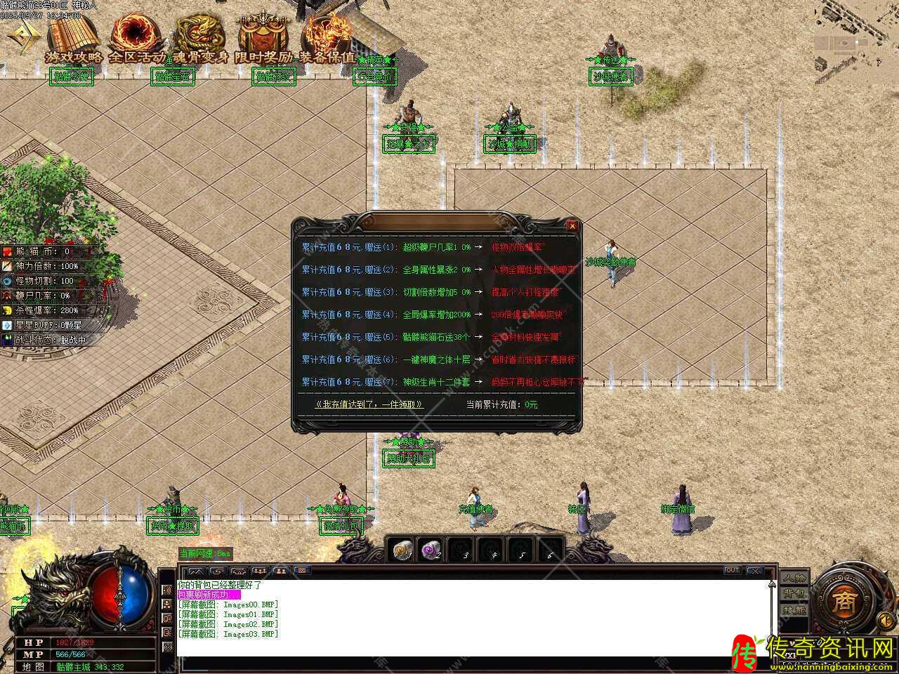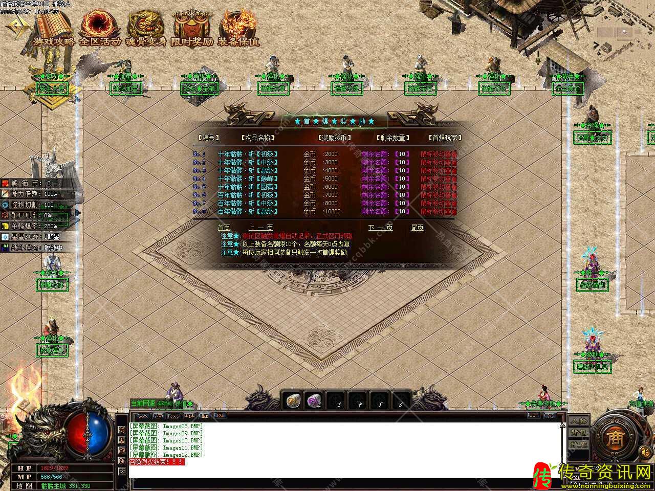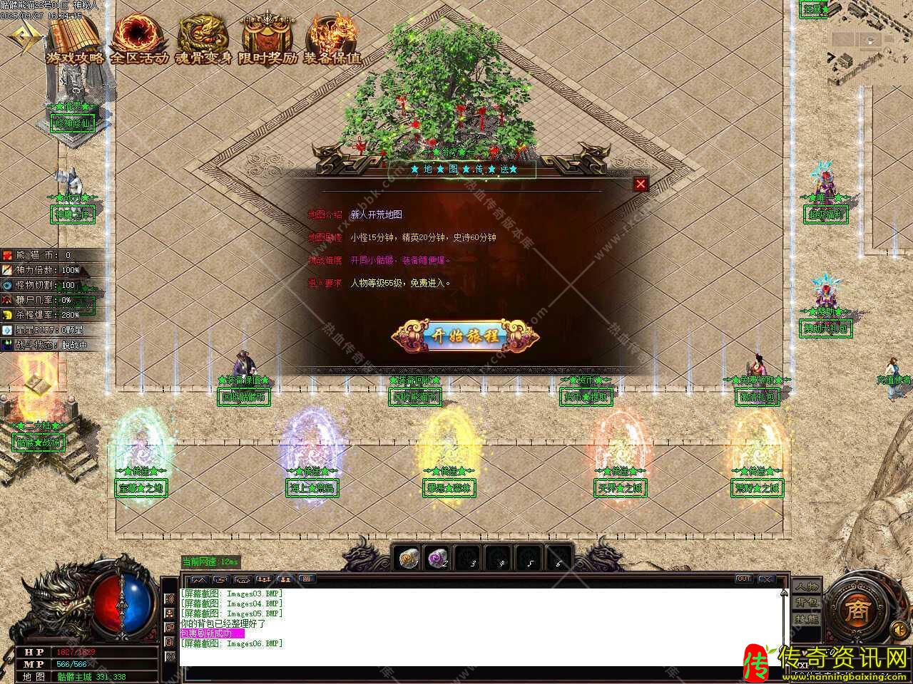 八、添加冰封遗迹等级地图,地图刷新怪物洪荒30分钟,史诗30分钟,世界30分钟,传说远古60分钟,装备随便爆,需要人物等级115级,金币5万才可以进入此地图。