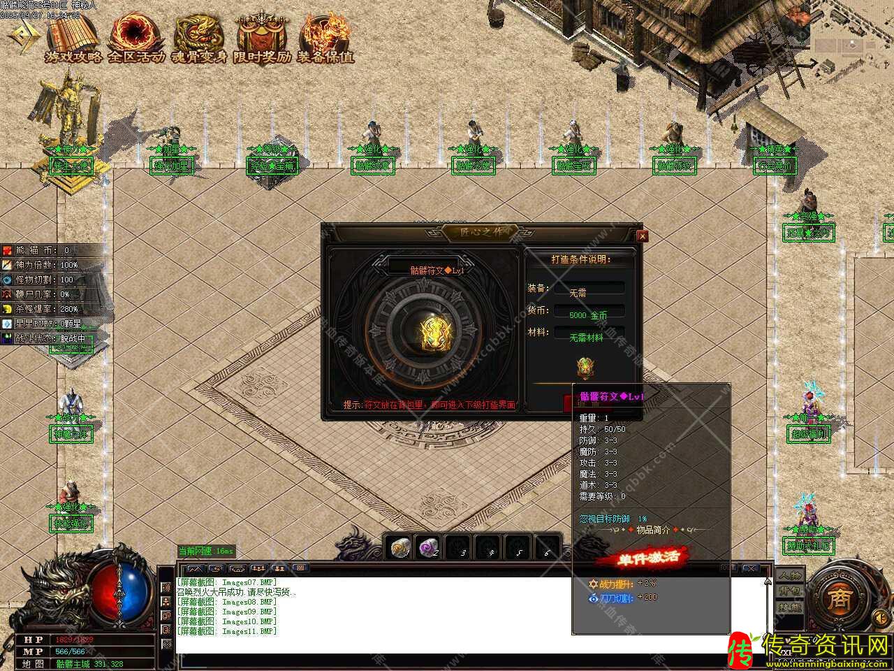 三、添加装备强化功能,全身强化达到110星,HP+4000,物伤法伤减少百分之10,拥有之前BUFF,全身强化达到180星,HP+17000,攻击+100 ,伤害吸收20%,血量低于20%恢复100%,60秒CD。