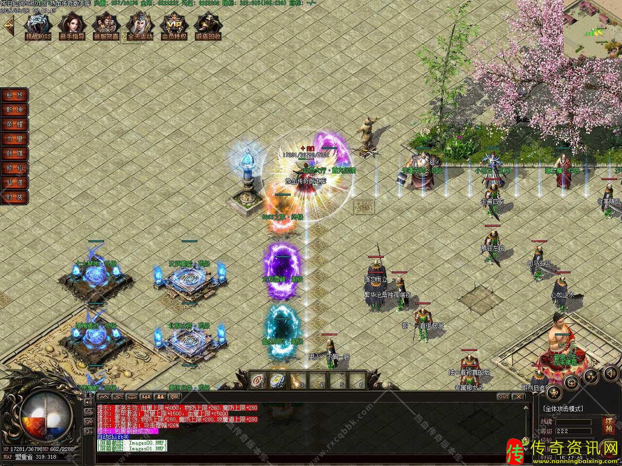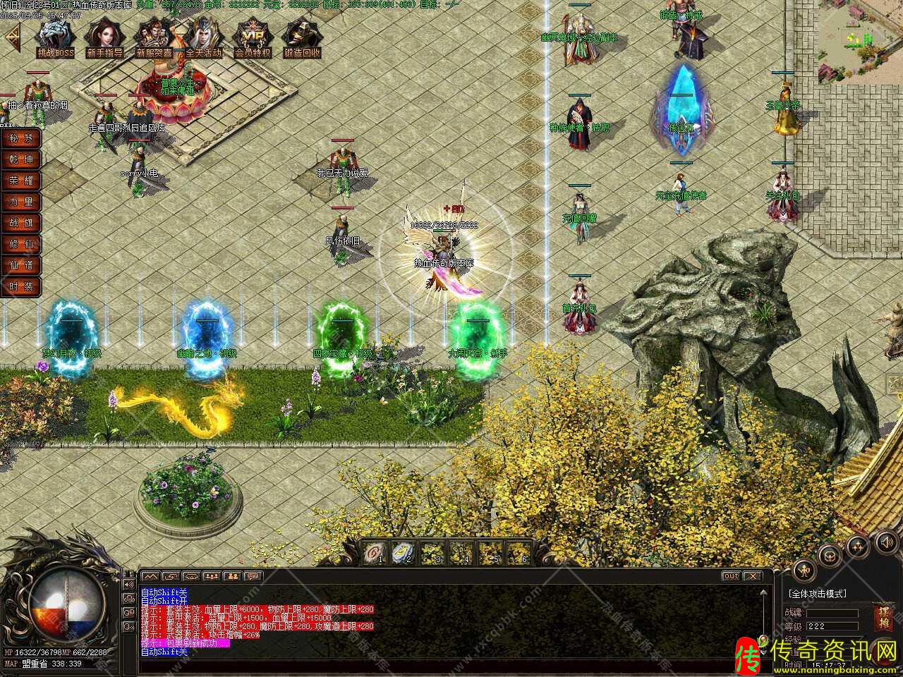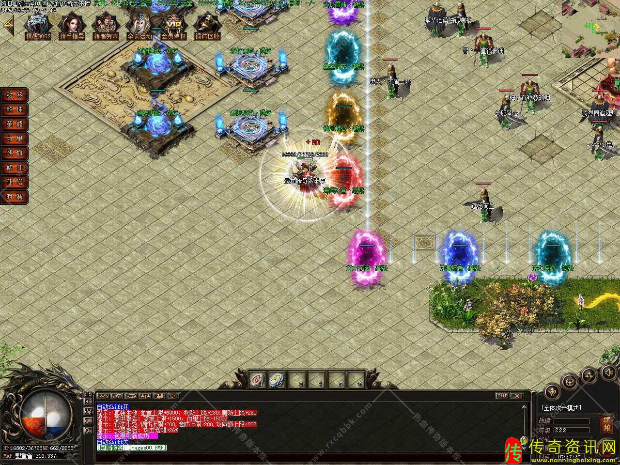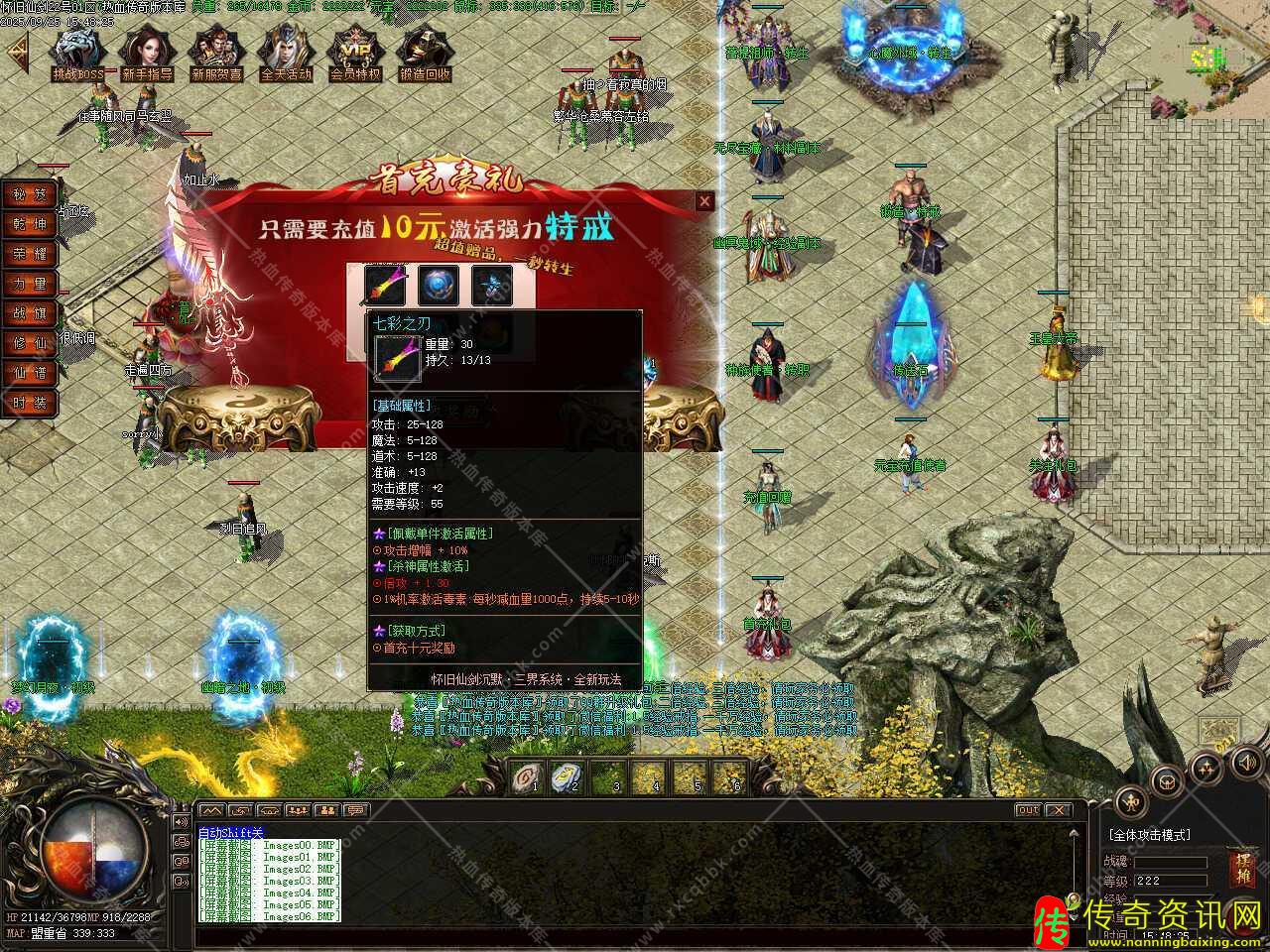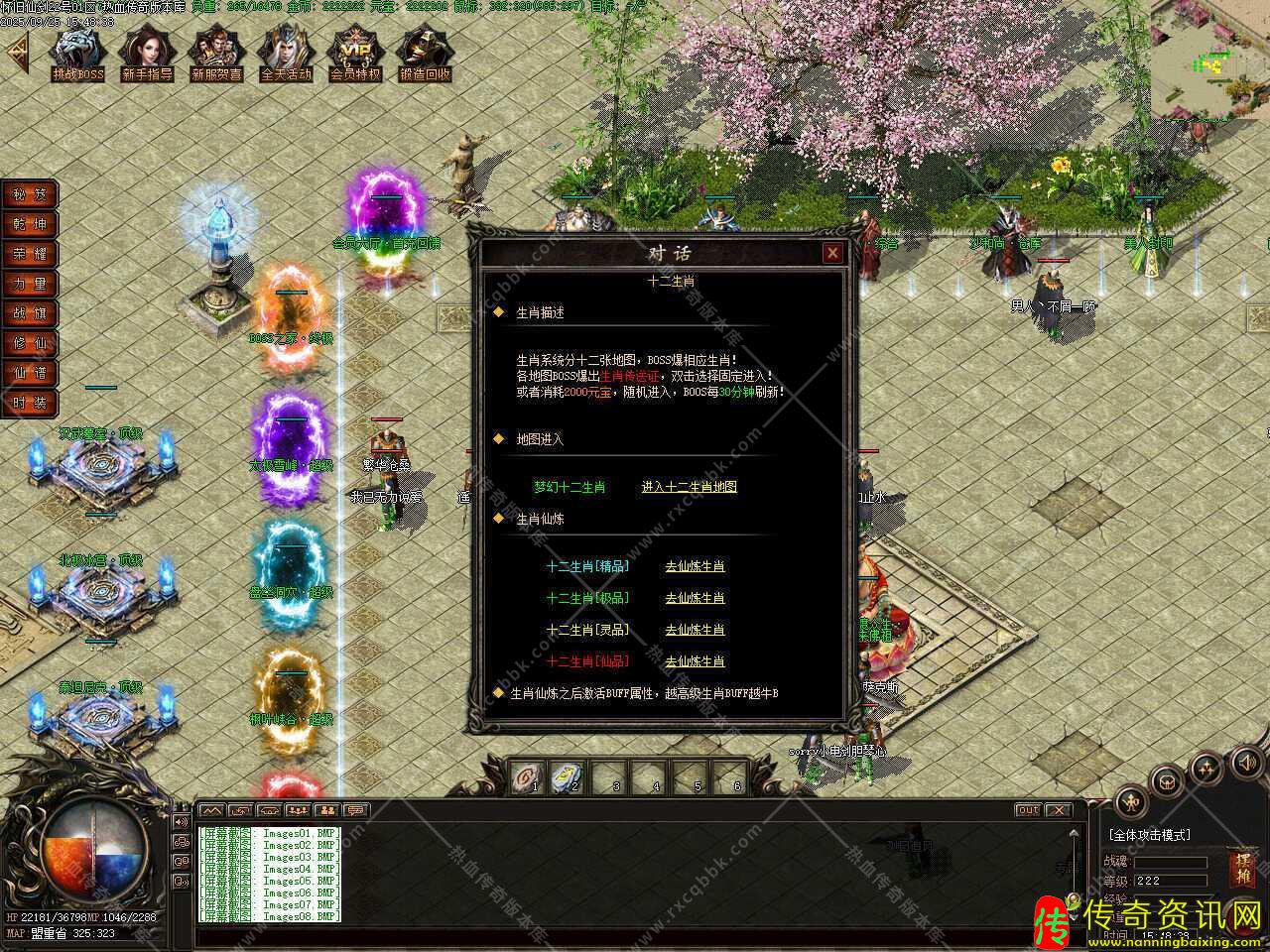 三、添加生肖功能,生肖系统分十二张地图,BOSS爆相应生肖,各地图BOSS爆出生肖传送证,双击选择固定进入或者消耗2000元宝随机进入此地图中,BOSS每30分钟刷新,注:生肖仙炼之后激活BUFF属性,越高级生肖BUFF越厉害。