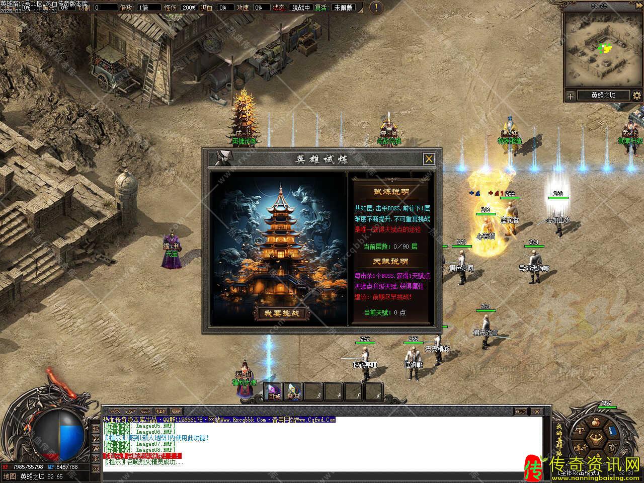 传奇私服网站英雄路专属沉默单职业传奇私服网站带假人免费服务端 admin 2026年04月13日 08:33 957 0 补丁大小:3.78GB,PAK补丁全部一次加密,测试客户端为17周年纯净客户端,游戏兑换码:888888,版本带有假人,自动上线。 版本介绍:新增试炼副本地图,打掉地图中的怪物,可领取奖励进入下一层,进入此地图1-49层,需要1W元宝;50-90层,需要5W元宝,每进入到下一层难度不断提升,不可重复挑战,每打1个BOSS获得1天赋点,此地图是唯一获得天赋点的途径。 版本介绍:新增符文合成功能,在游戏中NPC那放入要合成的同级别符文装备和对应的“合成书”即可,成功合成,随机给1个高级符文。 版本介绍:新增符文重铸功能,任意符文可用重铸石重铸成同等级其他符文,需要材料重铸石1个和1W元宝,更多版本功能请进去体验。 标签: #传奇sf网站 #假人 #服务端 #沉默 #版本 #英雄 #引擎 #传奇私服网站