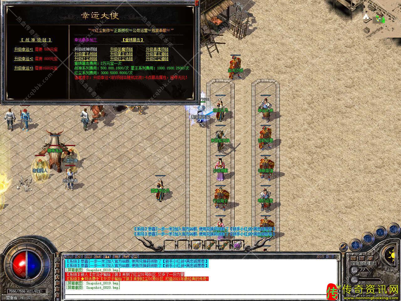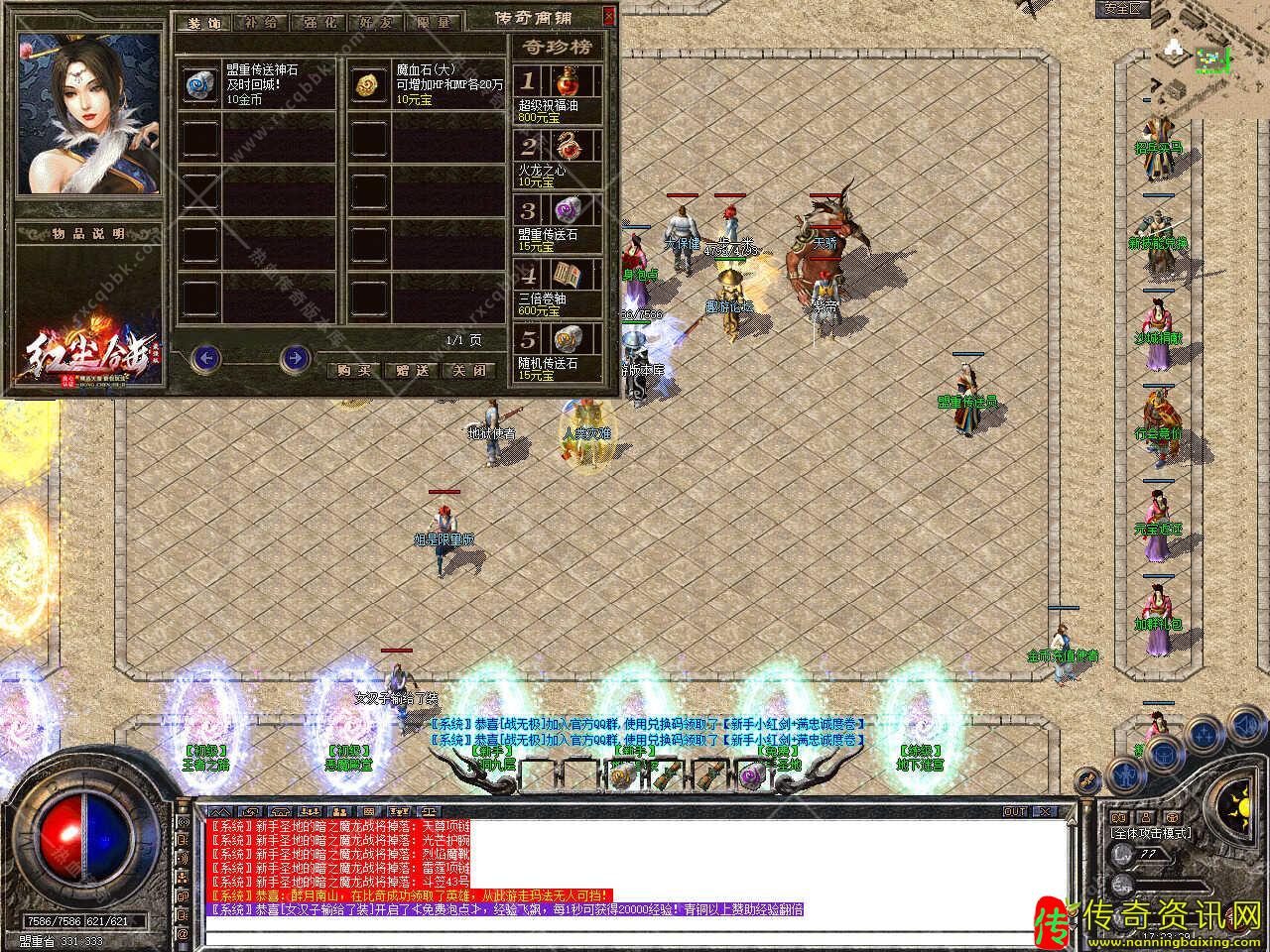 版本介绍:新增装备升级功能,盔甲可升级攻击、魔法、道术、防御、魔御等,升级需要5000元宝,成功率为30%,失败不碎,属性全满可激活神秘属性。