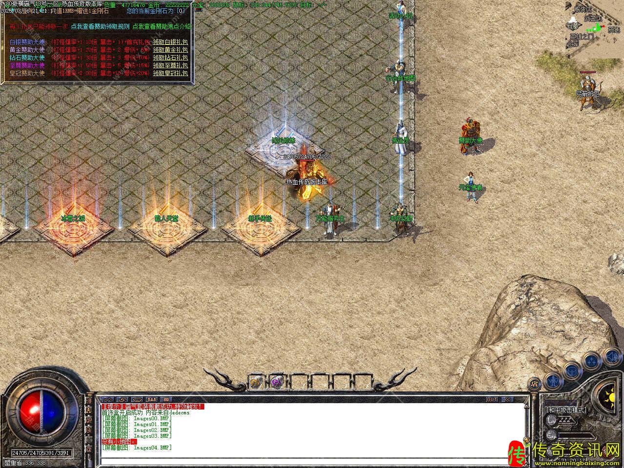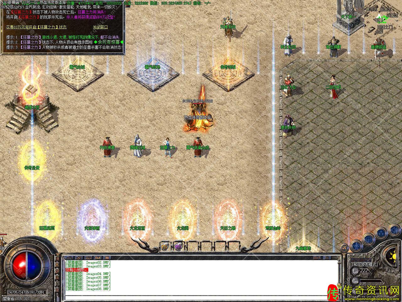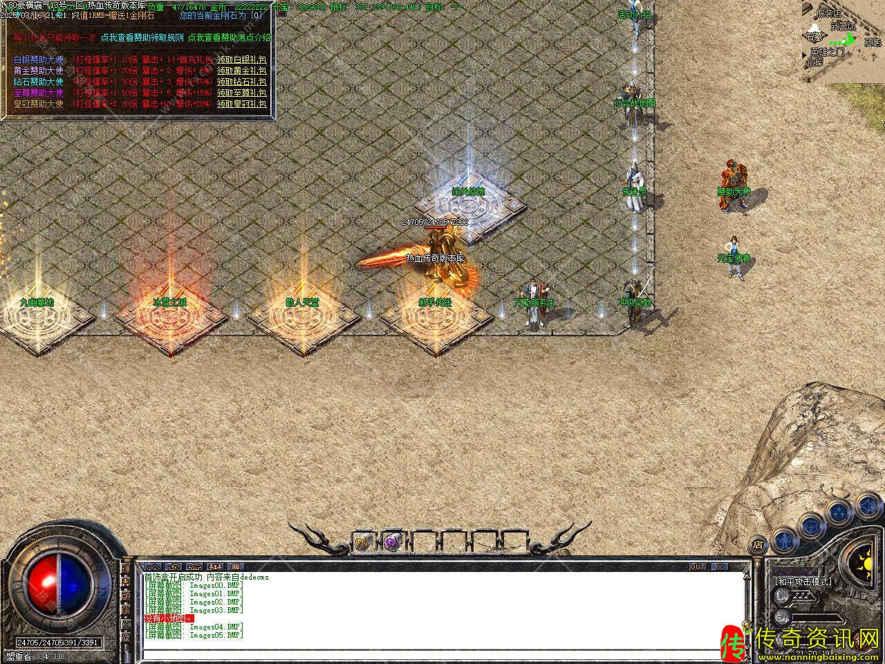 版本介绍:新手上线,建议创建两个号,一个号泡点,一个号打装备材料和元宝!前期建议玩道士,打装备和元宝,等装备和等级上来可转法师和战士!