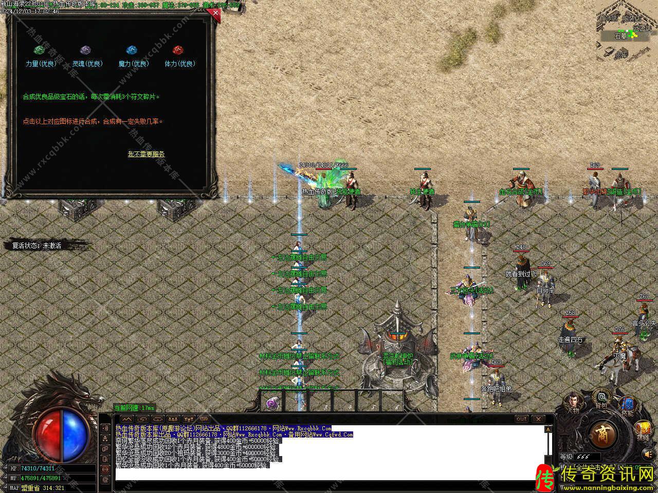 版本介绍:节奏不快不慢,装备保值,散人绝对好发展,每天五个新区,第三天下午合区,晚上统一攻城。