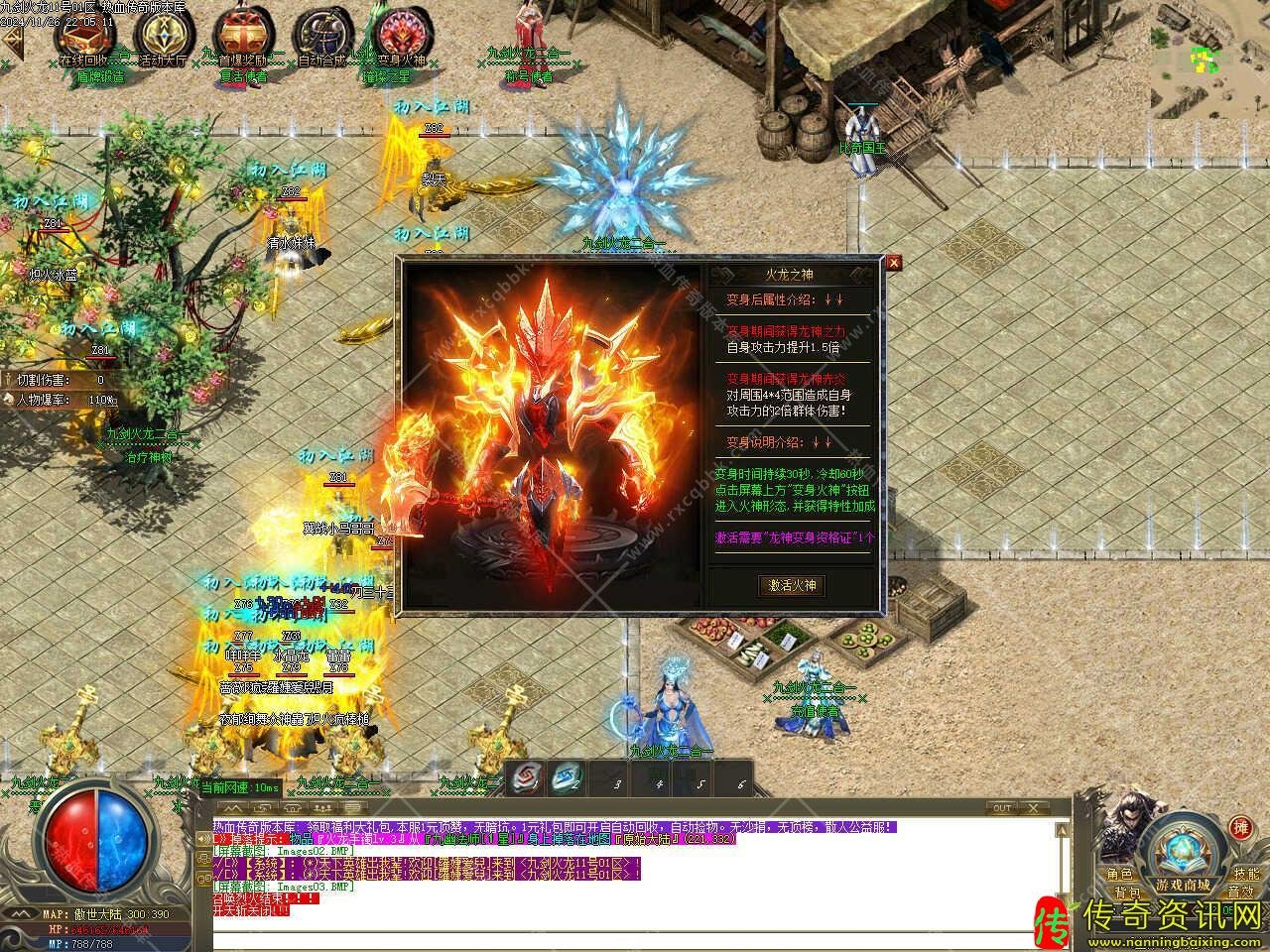 版本介绍:新增火龙之神变身功能,变身期间获得龙神之力,自身攻击力提升1.5倍,变身期间获得龙神赤炎,对周围4*4范围造成自身,攻击力的2倍群体伤害!变身时间持续30秒,冷却60秒,点击屏幕上方"变身火神"按钮进入火神形态,并获得特性加成。