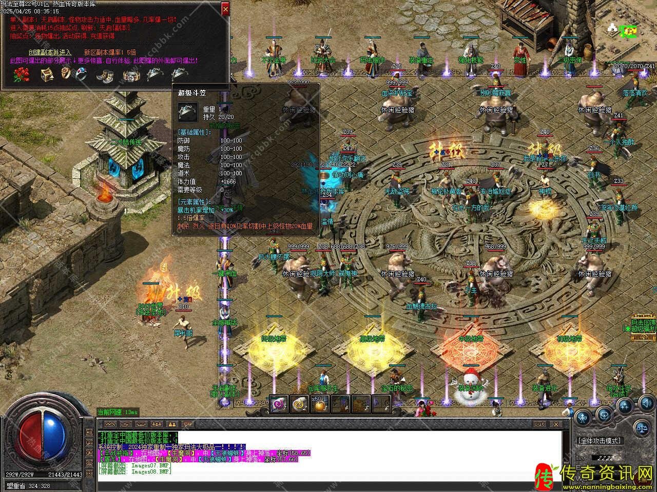 版本介绍:新增高级奖励功能,这里有些斗笠,是准备给高级人物的,只要您的等级达到,即可领取,白金斗笠48级可领,功魔道1.1倍攻击;钻石斗笠49级可领,功魔道1.15倍攻击;梦幻令牌斗笠50级可领,功魔道1.2倍攻击,快速升级方法有回收装备、BOSS可爆出经验卷,也可以通过商铺获得经验卷。