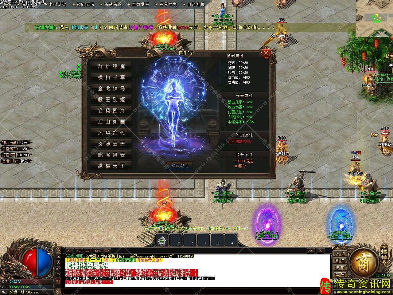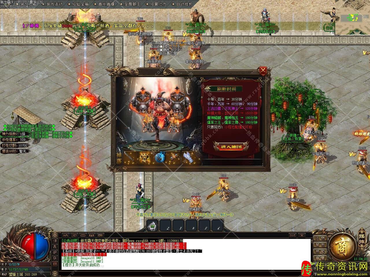 版本介绍:此传奇版本中十万血以上的怪都有几率爆终极,血越多的怪爆率越好,神器装备只有神器怪爆,下四格加斗笠特殊全靠打没有合成,任何3000万血以上怪物都出终极,全服白名字怪物见到不要放过,血少一样出终极,神器怪爆神器装备不要错过,散人多多打怪一定可以逆袭。