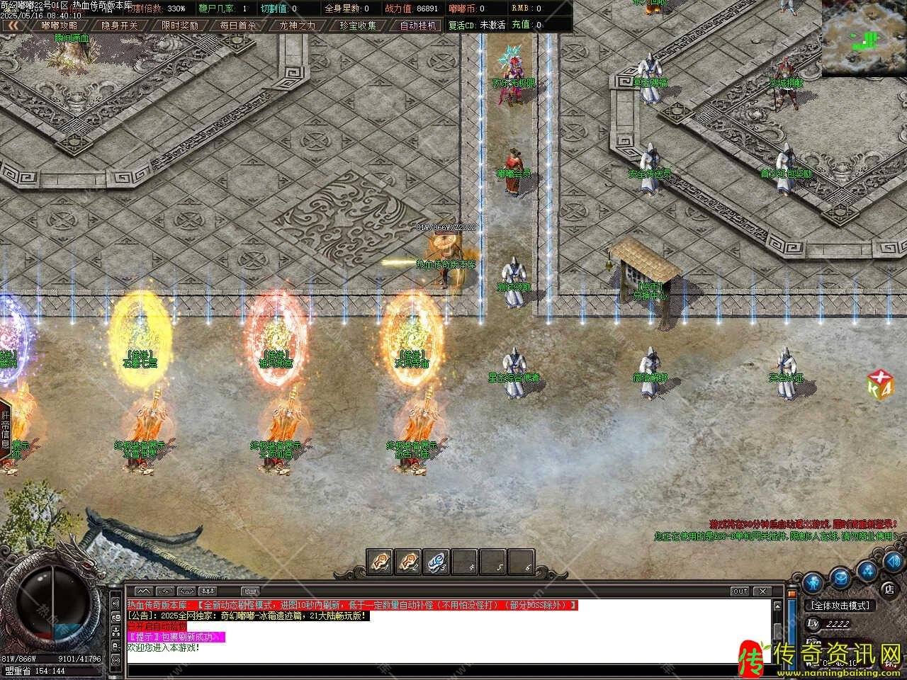 版本介绍:添加测试区奖励功能,测试区装备回收的金币和首爆获得的金币都可以在新区领取,记录方式为自动记录,无需手动操作,但需手动领取,正式开区后需要在NPC处手动领取。