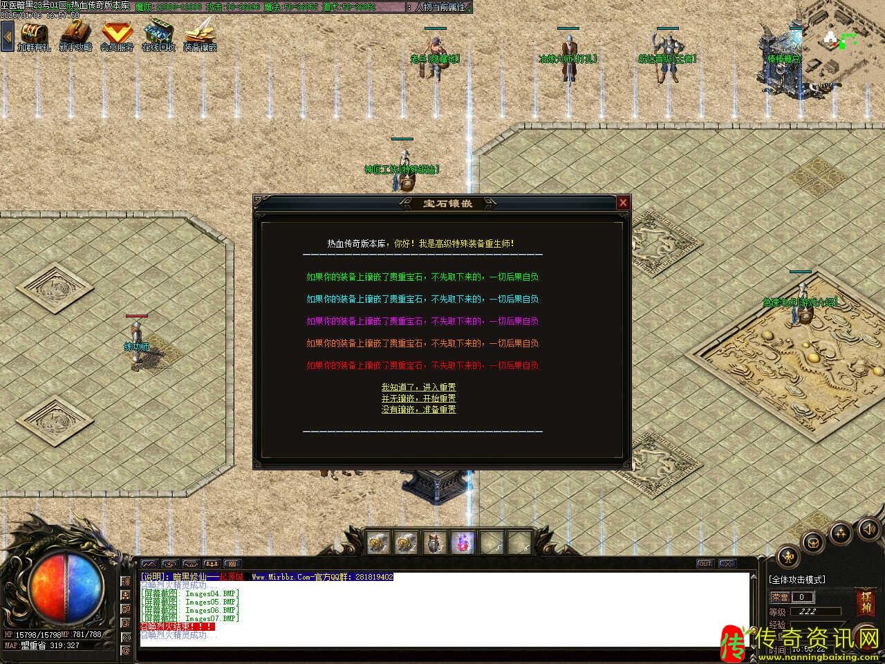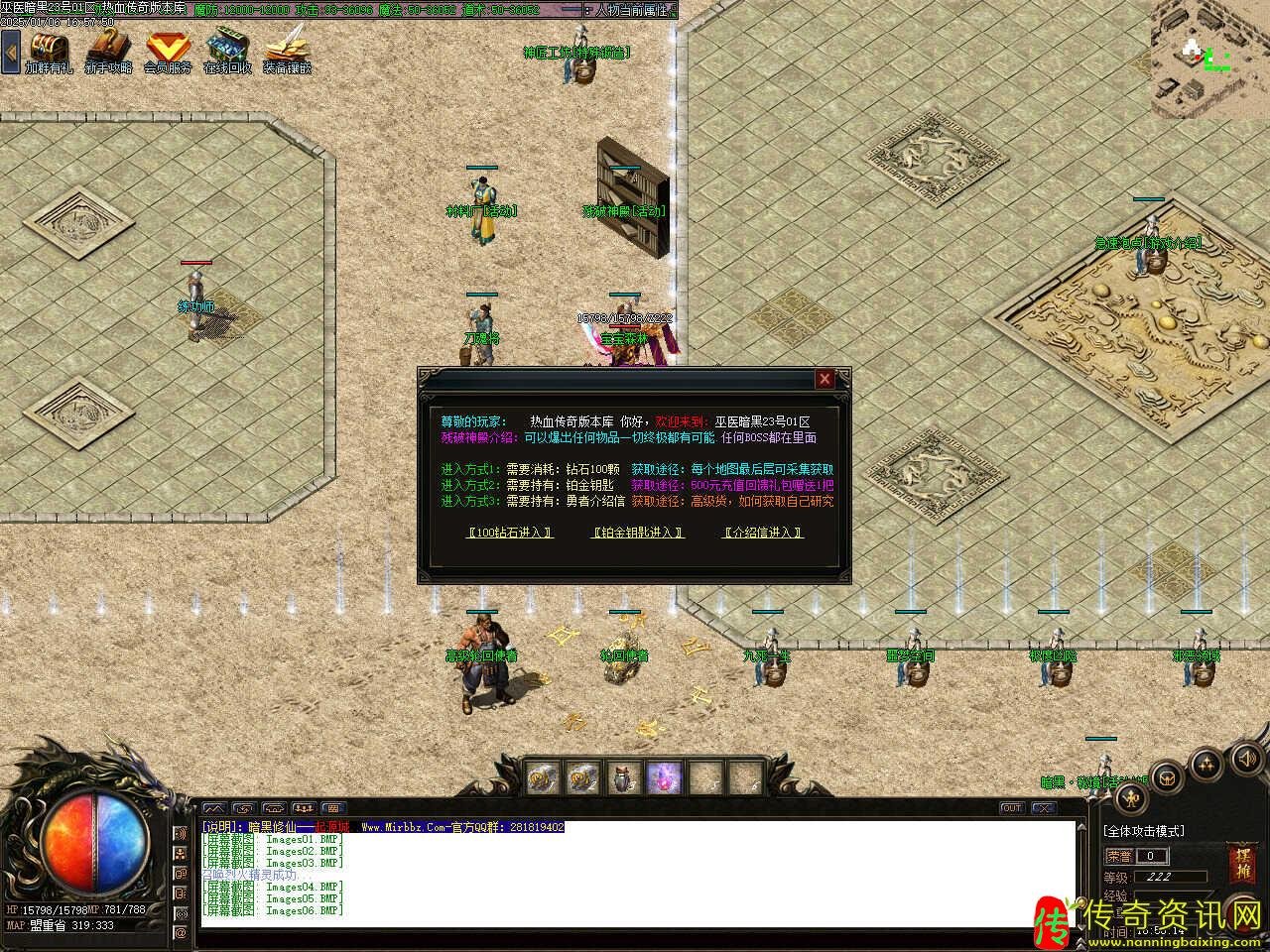 版本介绍:此传奇私服网站服务端新增结阵活动地图,结阵满288层触发装备派送活动,爆出大量首饰;结阵满588层触发鸿运天降活动,送出经验装备;结阵满888层会触发主宰降临活动,送出终极装备,提示:财富神石双击可以启动魔法结阵,可随机获得经验元宝。