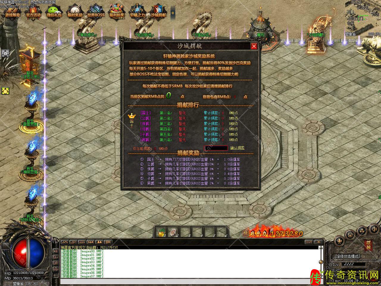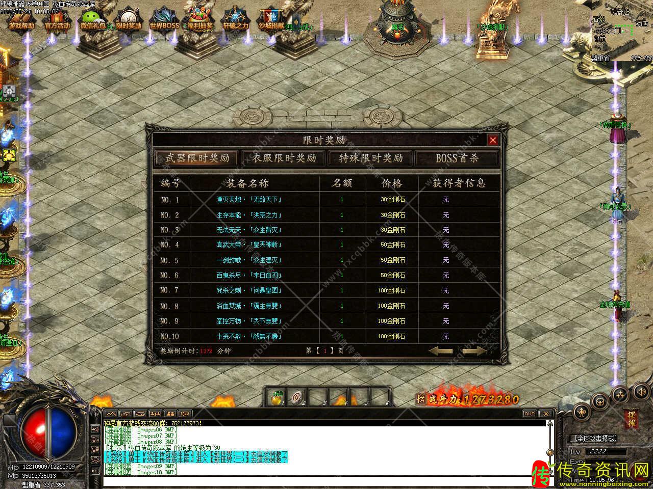 四、添加霹雳荒原转生地图,此地图也是散人前期发展必经之地,刷新BOSS福利神兽,爆各种初级装备、元宝、特殊和转生材料,需要人物达到8转免费进入,本服为长久服,所有装备全部靠爆出,更多玩法请进服体验。