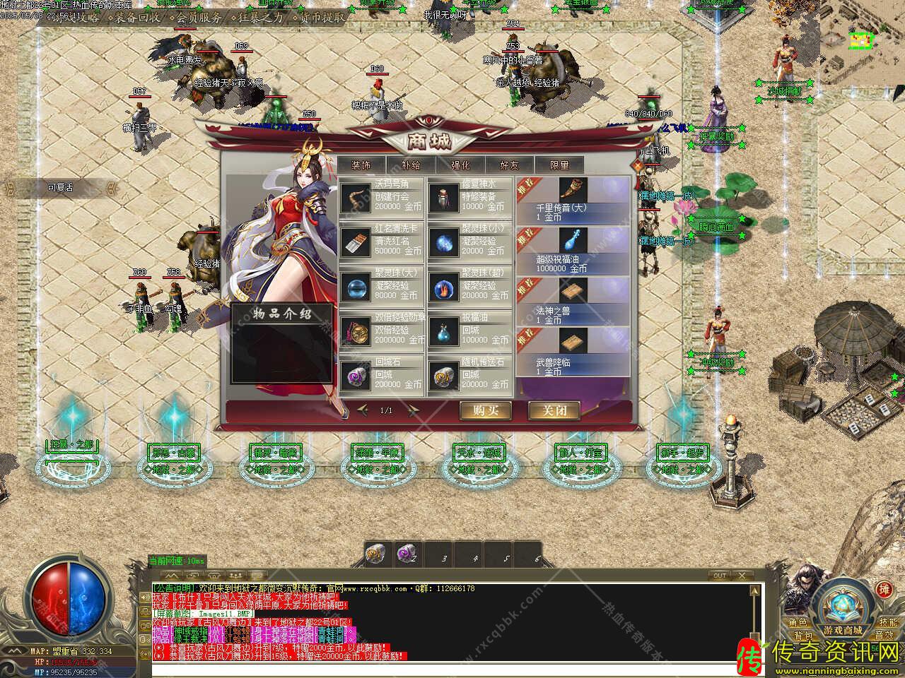七、新增冰宫乐园地图,刷新冰宫甲虫、冰宫雪人、冰宫战士、冰宫神将等普通怪物,BOSS有冰宫神虎、冰宫教主、冰宫魔王,特殊BOSS有福利BOSS、BOSS60分钟刷新一次,特殊BOSS300分钟刷新一次,可爆帝王系列、凤舞系列、神武系列、特殊首饰等装备,需要等级85级和金币50万进入,会员可免费进入。