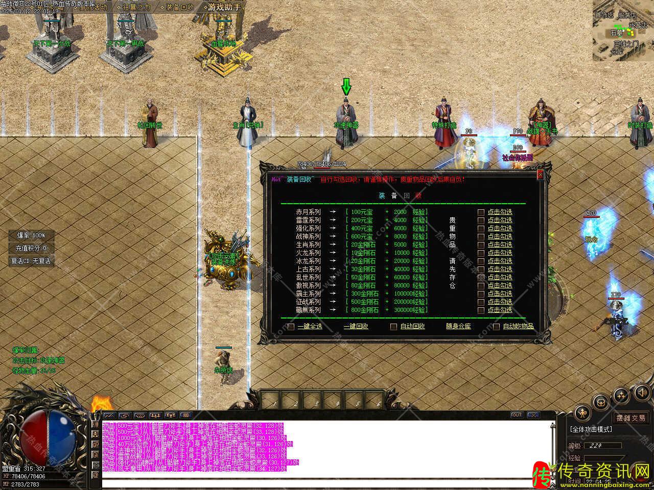 版本介绍:新增装备洗**能,本服熔炼神石所有怪物有几率掉落!罕见材料,用1个熔炼神石+8888金刚石,随机强化装备,攻魔道属性最高加+80。