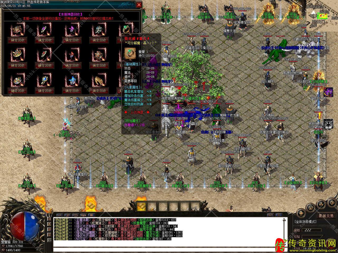 五、本服一切装备全部可以爆出,没有合成,所有BOSS都可以爆出来,神器装备可回收成金刚石。