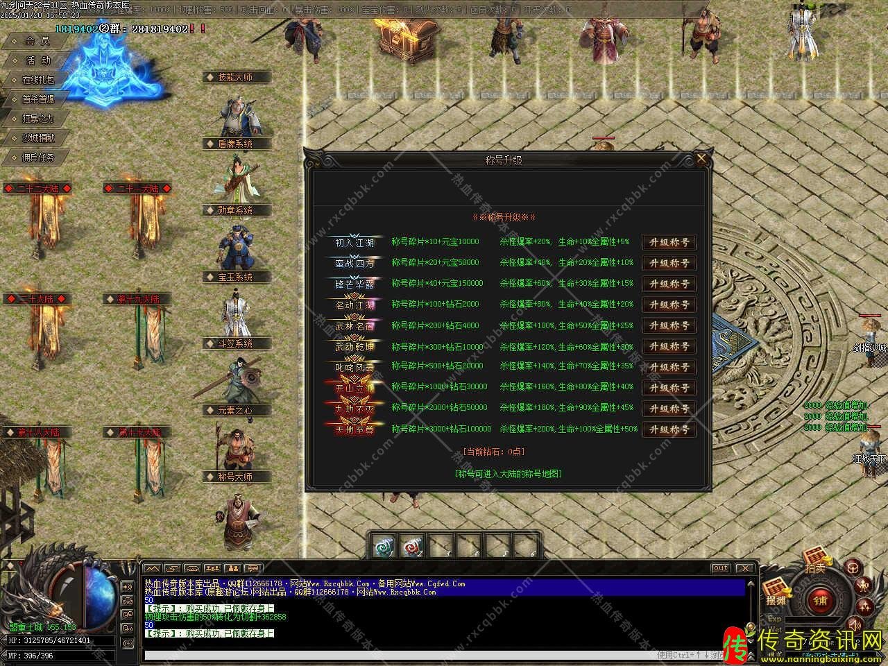 版本介绍:新增材料合成功能,可合成超级祝福油、三倍经验卷、称号碎片等,注:合成称号碎片需要10个切割碎片。